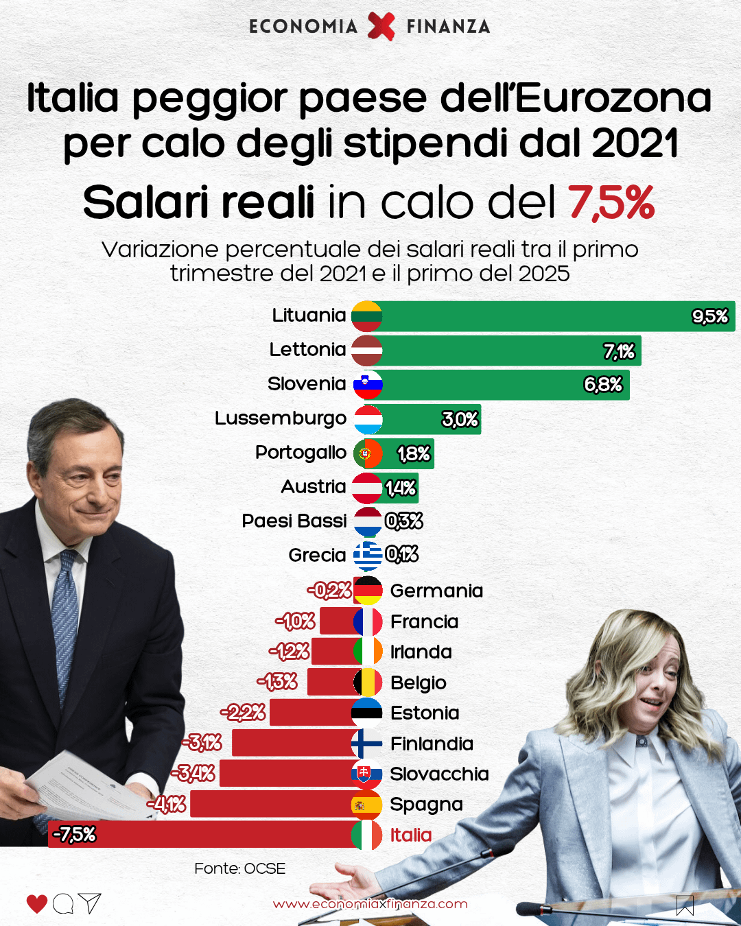Nonostante il più grande dispiego di risorse pubbliche da dopoguerra ad oggi, i salari italiani continuano a calare.