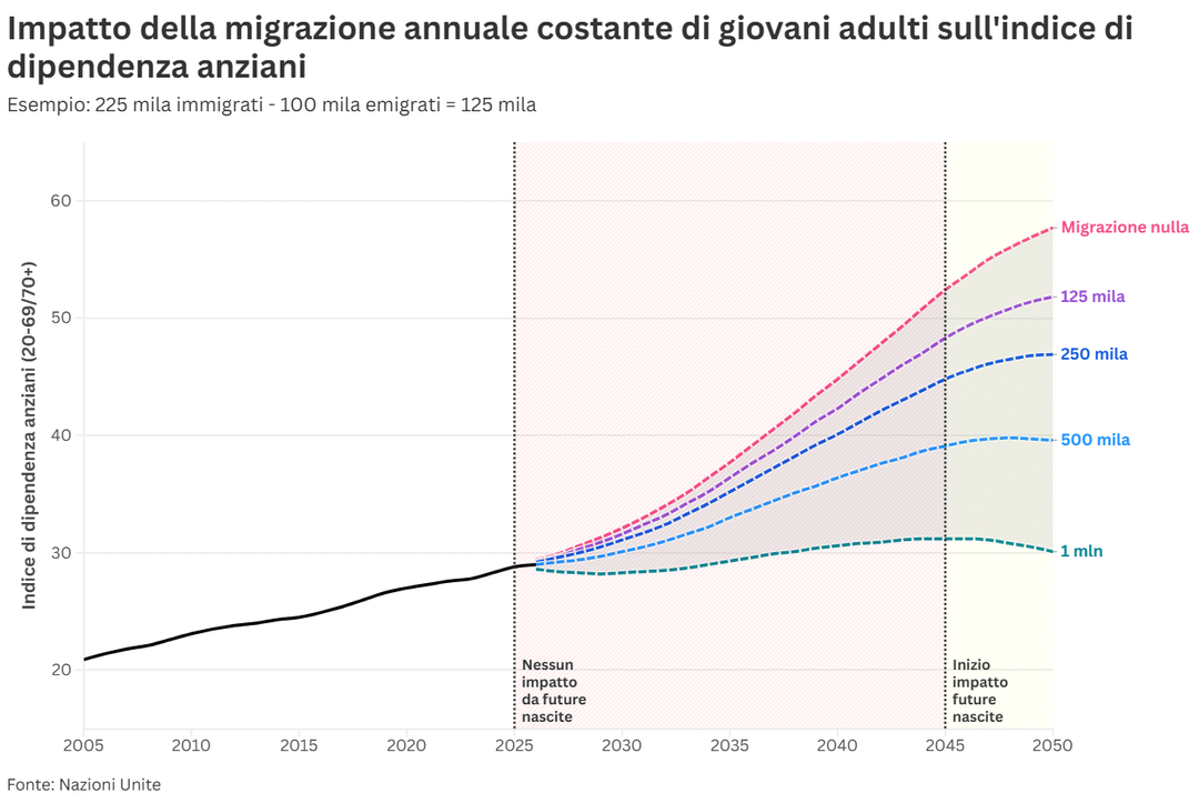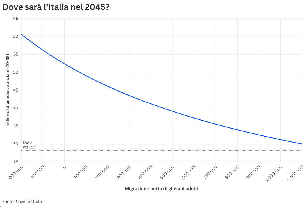 - per bloccare completamente il fenomeno ci vorrebbe una migrazione da 1 milione annuo, politicamente ultra impopolare ed inattuabile (e che probabilmente finirebbe per diventare economicamente dannosa)