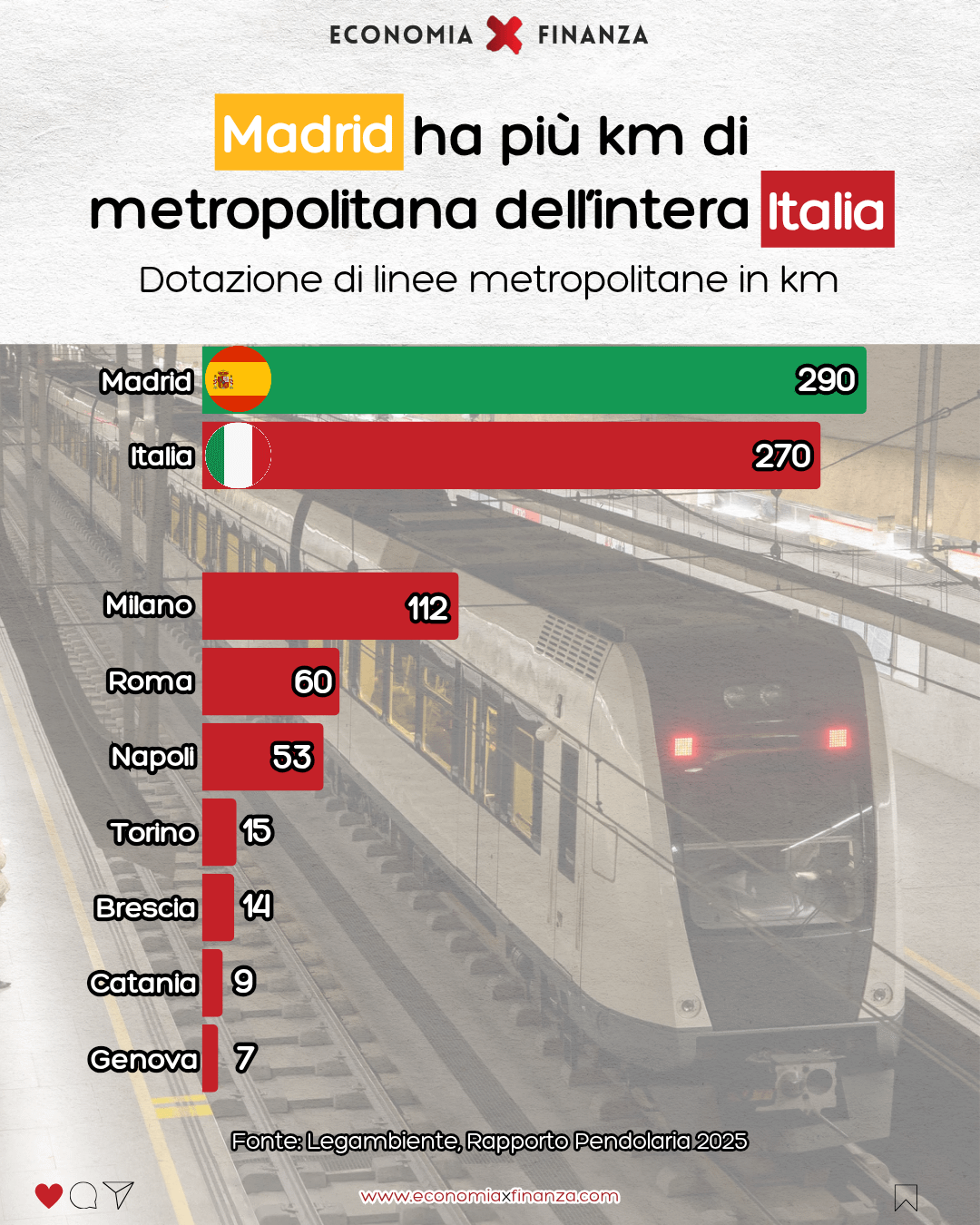 Onestamente non capisco come facciamo, nel 2025, ad accettare che le nostre città funzionino ancora senza una vera rete di metropolitana. Le metropoli moderne si basano su trasporti rapidi, puntuali e frequenti. Senza, tutto il resto (qualità della vita, lavoro, turismo, servizi) crolla come un castello di carte.