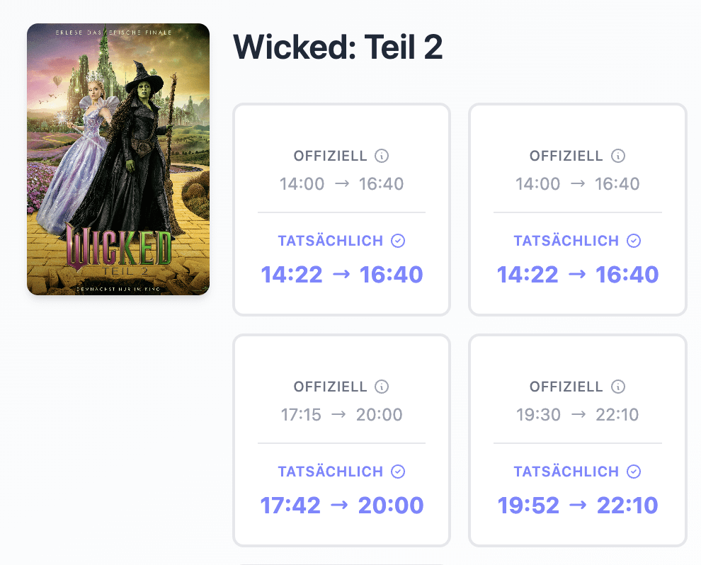Durante una recente proiezione di un film, irritato dalla pubblicità, mi sono chiesto se per caso gli orari ufficiali di programmazione non fossero condivisi da qualche parte dai cinema. E così ho trovato alcune API di cinema nel mio paese che lo fanno davvero! Ho deciso di provarci anche in altri, a cominciare dalla Germania. Sfortunatamente, non riesco a trovare tali dati da Cinestar e Cineplex. Ma l’ho fatto con CinemaxX (potrei anche esaminare UCI Kinowelt).