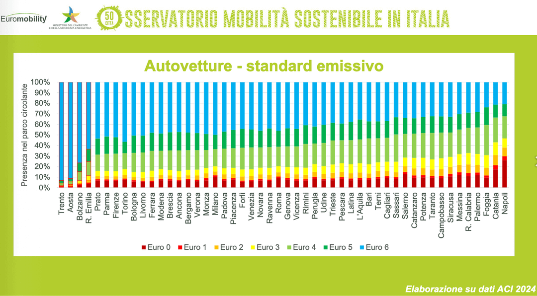 Considerare Metano e GPL nel basso impatto fa un po’ ridere: coi blocchi del traffico si guadagna a malapena una classe (cioè un Euro 1 si considera Euro 2) ma in questo grafico magicamente sono a basso impatto?