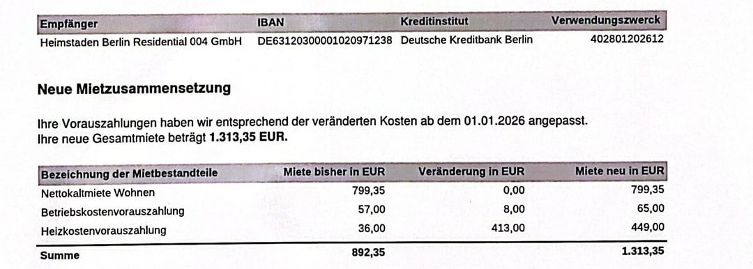 Recentemente ho ricevuto una lettera da Heimstaden che informava dei costi aggiuntivi di riscaldamento per il periodo 16.09-31.12.