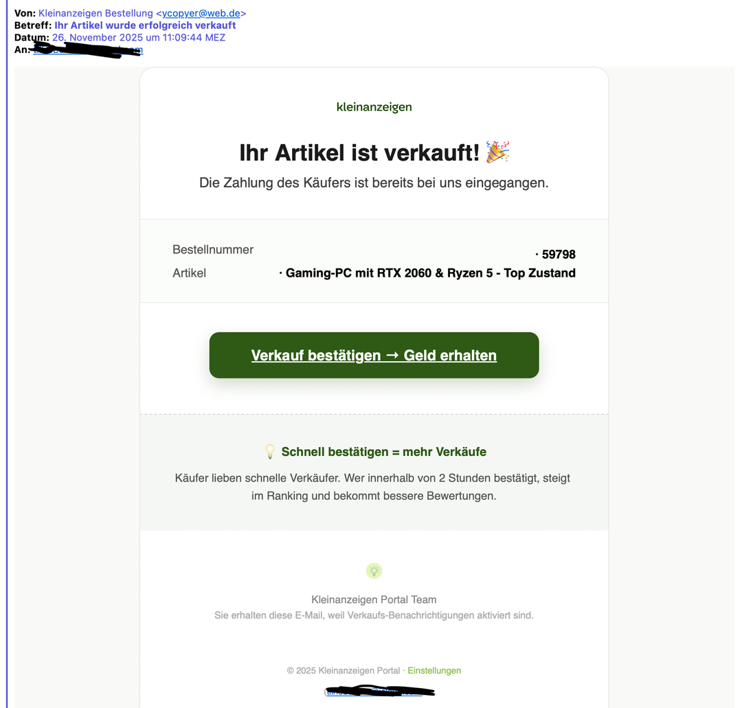 È pazzesco quanto sia professionale quella truffa. Oltre alla mail e al link del sito sembra Kleinanzeigen.