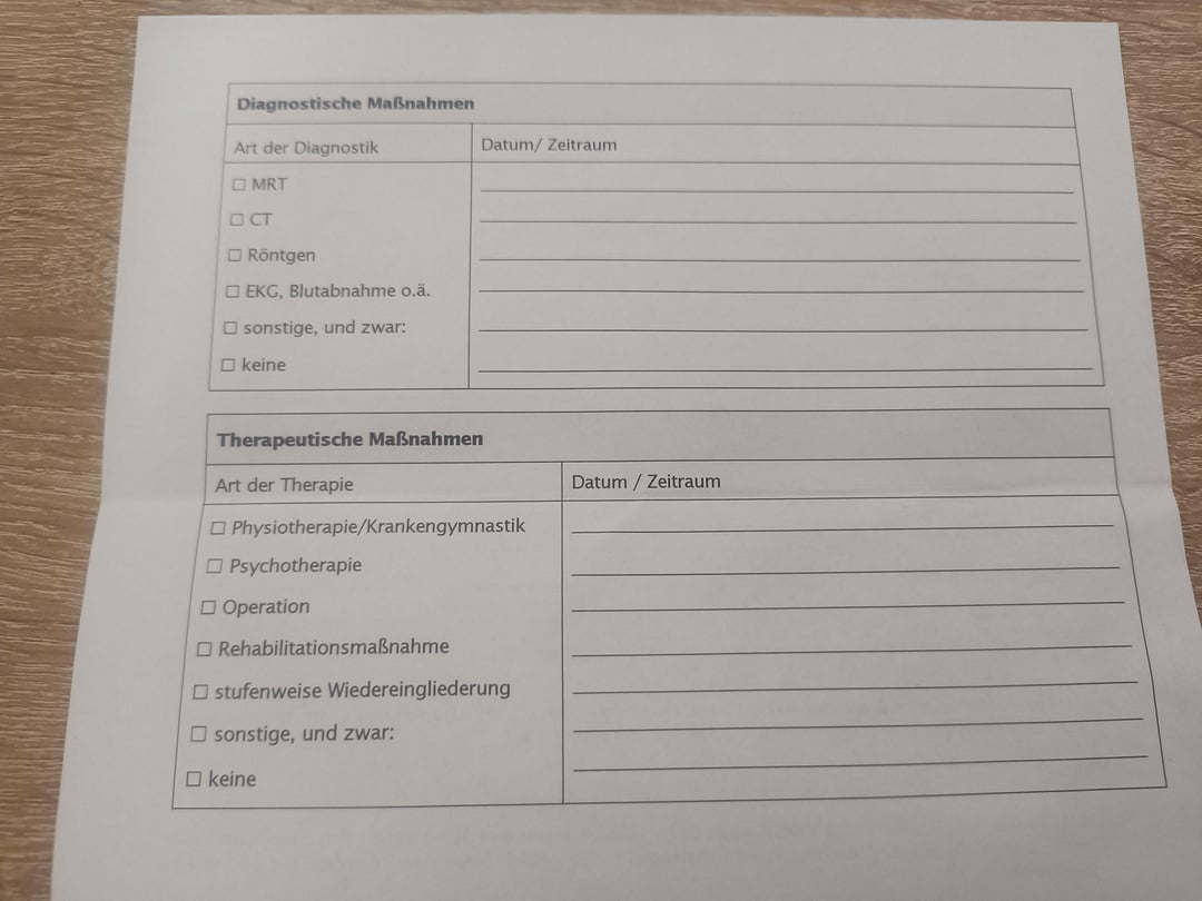 Non ho ancora ricevuto il krankengeld (ho già compilato la loro lettera precedente) e sono in congedo per malattia da più di 2 mesi, quindi ho paura che se scrivo qualcosa di sbagliato non mi daranno i soldi :/ (scusate, è colpa della mia ansia, sono in contatto con la mia assicurazione, ma questo processo richiede così tanto tempo..). Grazie per qualsiasi aiuto!