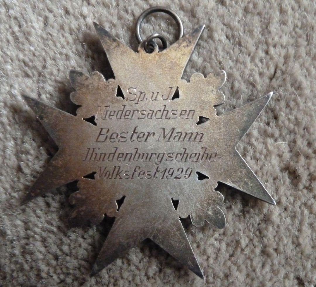 It says “Hindenburgscheibe” on the back. “Scheibe” means a shooting target. He was the best man shooting competitively at a target named after Hindenburg.