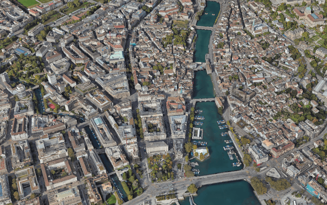 L’applicazione “Zurigo 4D” è una mappa tridimensionale interattiva che mostra lo sviluppo strutturale della città dal passato al presente fino al futuro. Zurich 4D si basa sul modello urbano 3D della città di Zurigo.