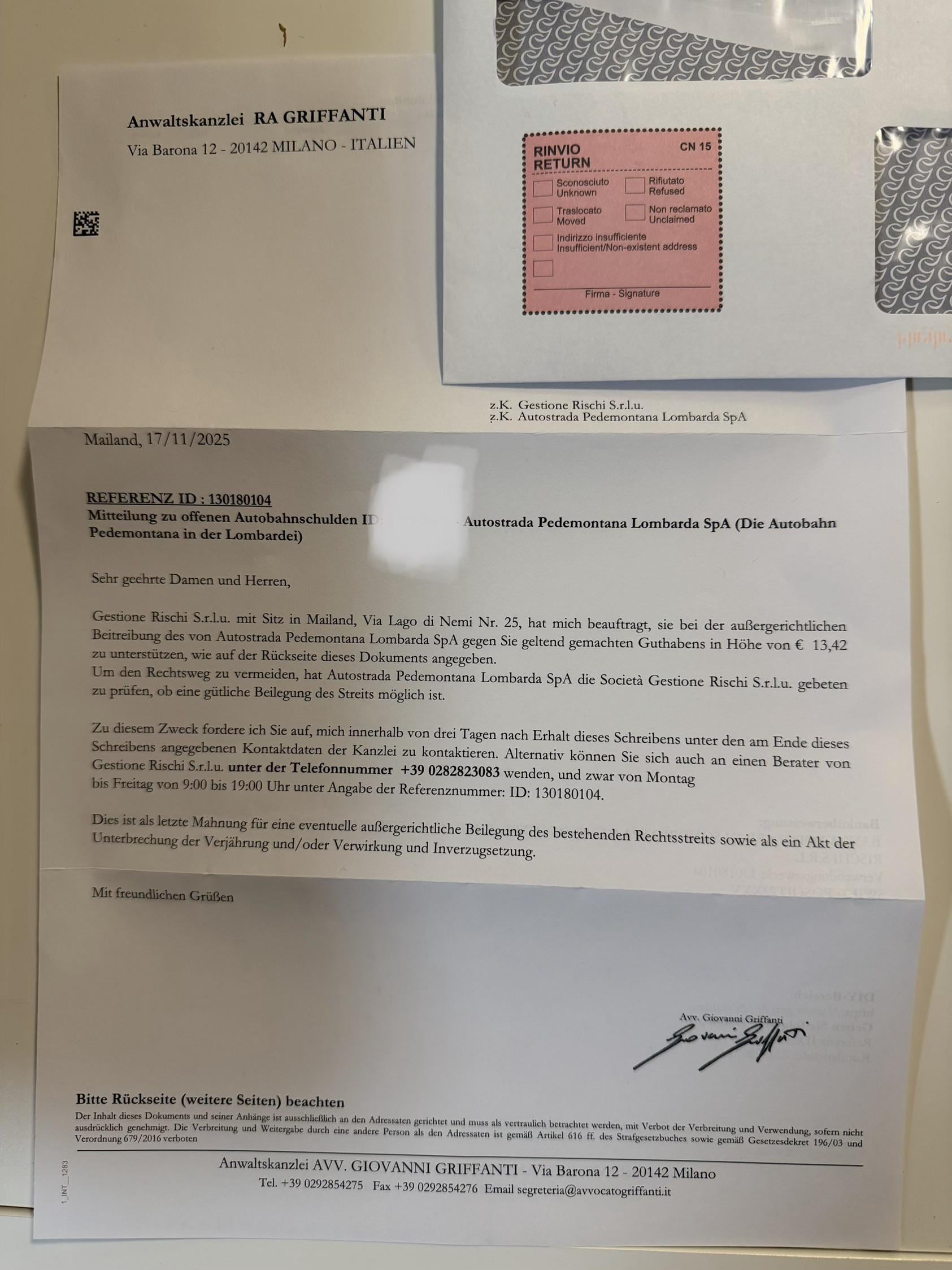 Ciao ragazzi, ho ricevuto una strana lettera l’anno scorso. Si trattava di pedaggi autostradali non pagati in Italia. Dato che non sono mai stato in Italia con la mia macchina, ho pensato che fosse una specie di truffa e ho gettato la lettera nella spazzatura. Oggi ho ricevuto questa lettera sulla stessa cosa. La data è l’anno 2017. Vivo in Svizzera dal 2019 e ho questo kennzeichen dal 2020, quindi è impossibile che fossi io. È reale o è una truffa?
