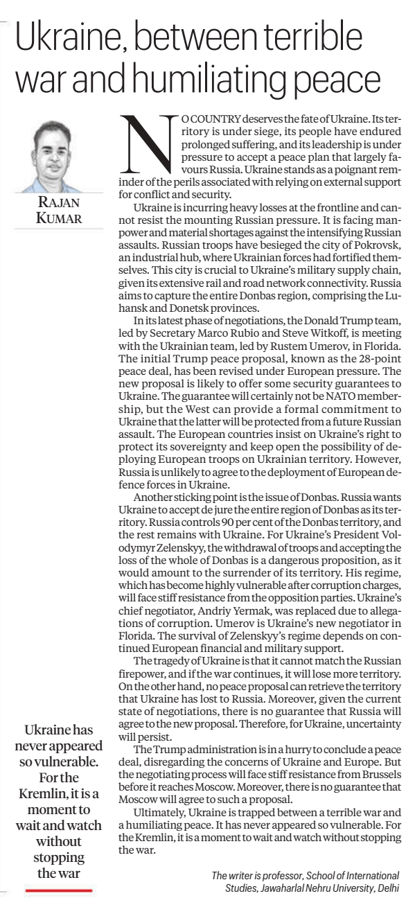 Questo articolo sostanzialmente dice quello che tutti sussurrano dal 2022: l’Ucraina è in una fase di “scegli il tuo veleno” – continua a combattere e dissanguare il territorio, o accetta un accordo di pace così inclinato che persino la Russia potrebbe arrossire (ma non lo farà).