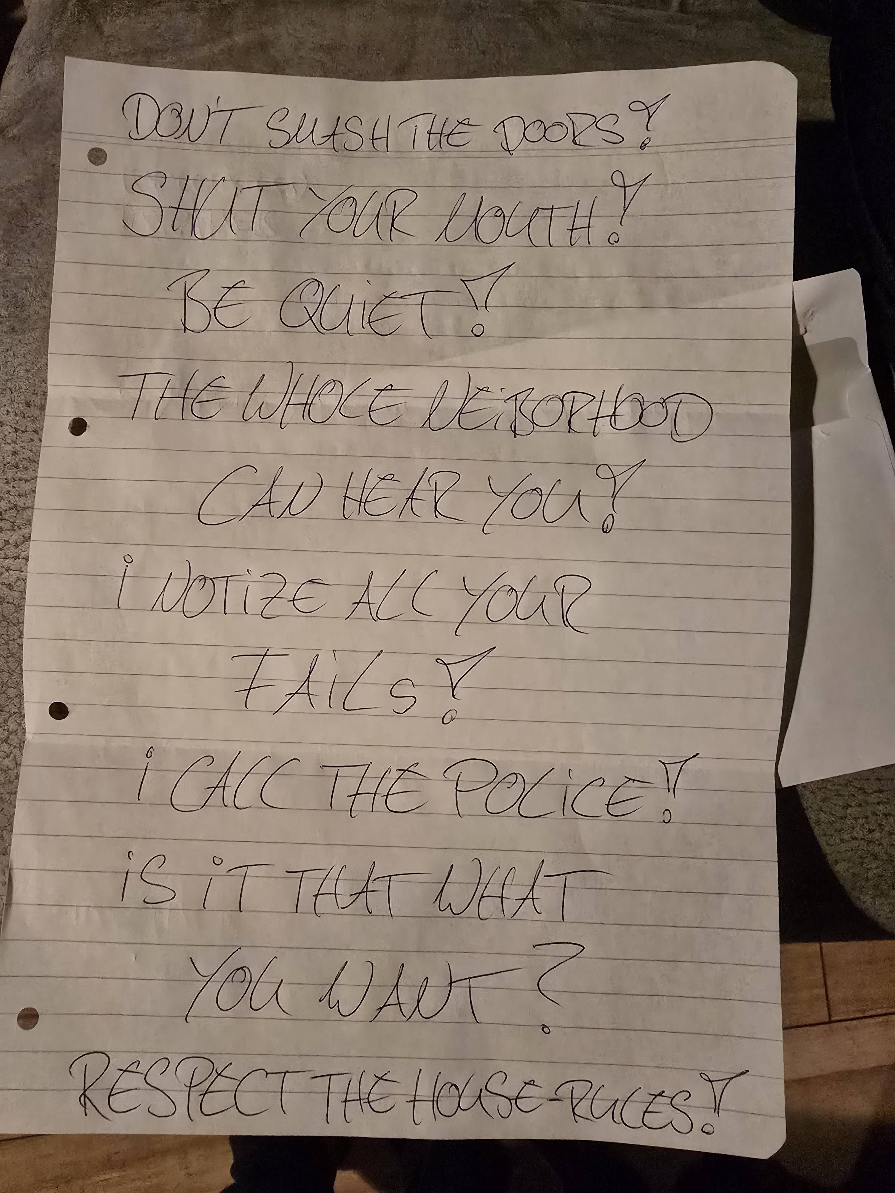 If you’re going to make additional comments about the note and/or calling the police, please read this comment again and then don’t.