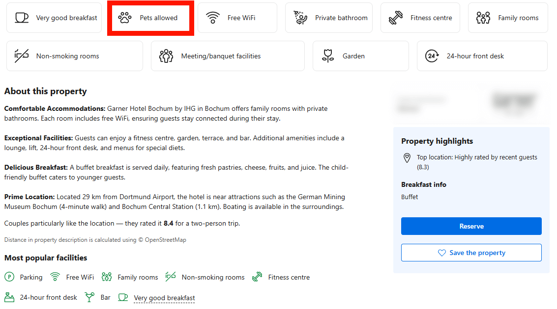 I don’t know how it looks on booking.com but on their website it says that only dogs are allowed. https://www.ihg.com/garner-hotels/hotels/de/de/bochum/qboab/hoteldetail/amenities (you can find it under Hotelinformationen or Hotel information)