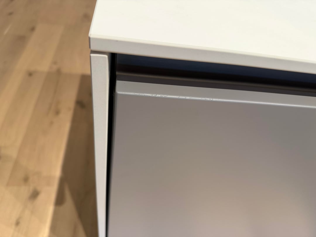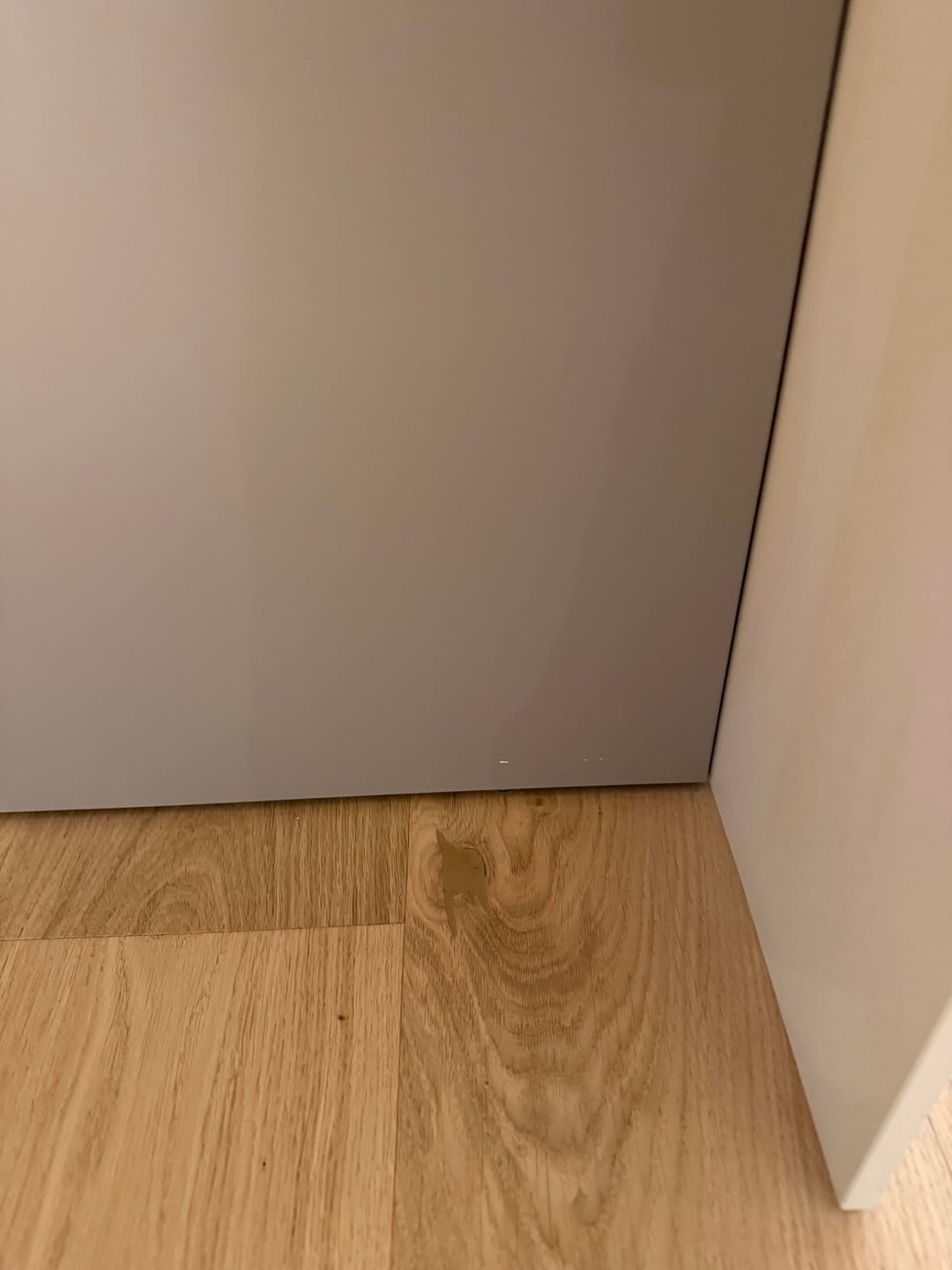 Sinceramente la cosa che ci dà più fastidio sono le piccole parti scheggiate in cucina, soprattutto quella al centro del mobiletto portarifiuti, fa davvero bella figura. Cosa potremmo aspettarci che facciano qui? È previsto il cambiamento dell’intera porta dell’armadio? Per aggiustare in qualche modo la macchia? Ridurre il prezzo di acquisto?