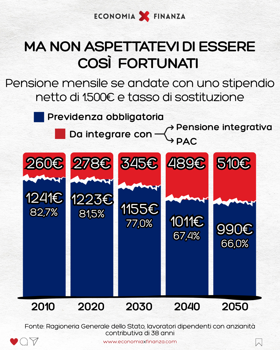 Prendere in mano da soli il nostro futuro finanziario: risparmiare e investire, anche con previdenza complementare privata o piani di accumulo (PAC), magari usando il TFR — per non dipendere unicamente dallo Stato.