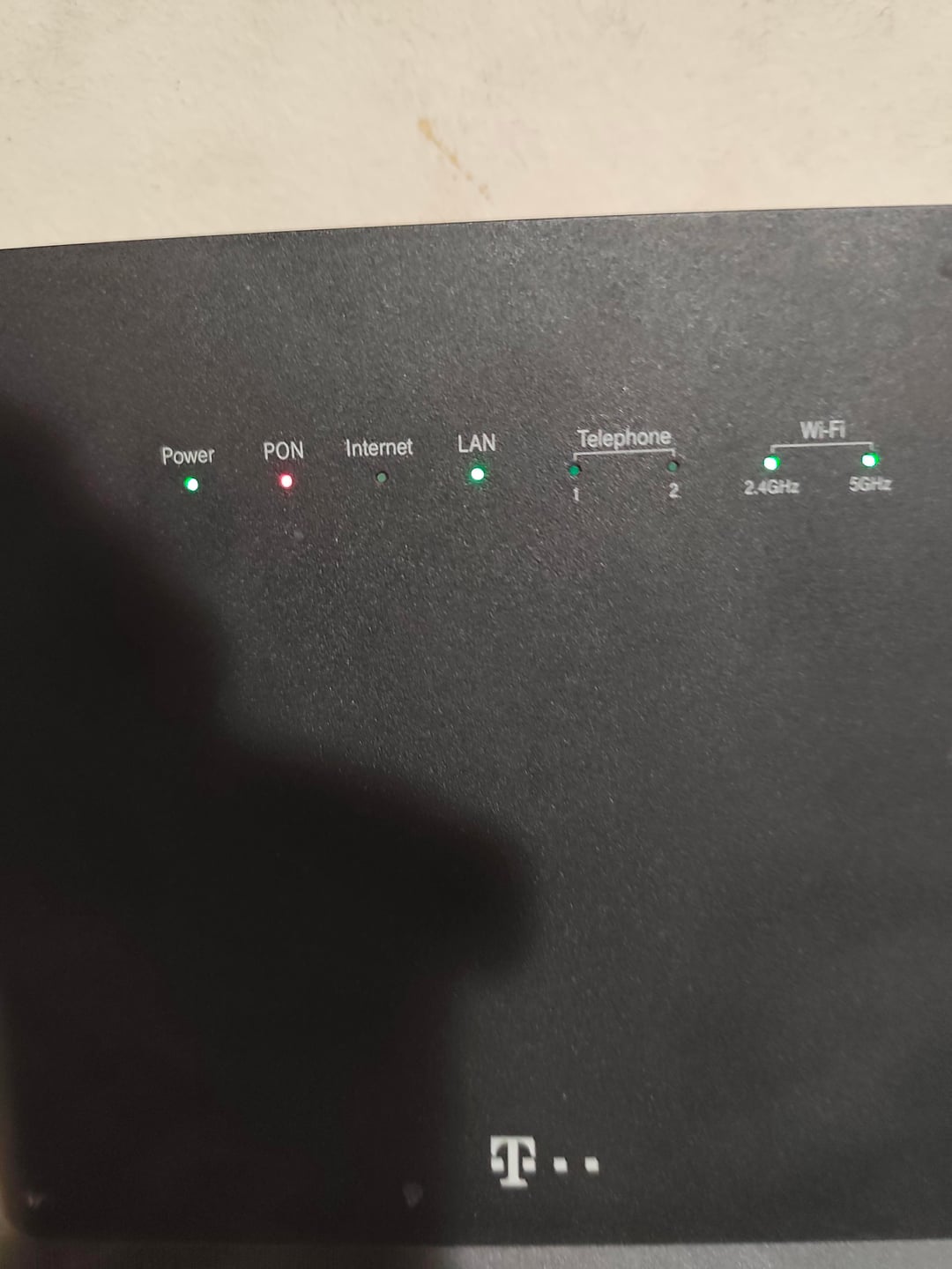 Sono arrivato all’appartamento dalla strada e il router con solo una luce ha attirato la mia attenzione "energia". Pensavo che fosse andata via la corrente, quindi l’ho riavviata. Ma non si arrivò a questo. Cavi, ottica, alimentatore sono ben collegati, quando la connessione viene stabilita, anche per tre minuti, era veloce ma molto instabile. Il giorno del mio arrivo, visto che è successo più volte in poche ore, ho chiamato il servizio Tmobile e ho chiesto se avevano problemi, nello specifico nel mio quartiere con la connessione o la distribuzione di Internet ottica. L’operatore mi ha risposto che ha visto che la mia connessione era interrotta, ma che in generale non hanno problemi. Questo è successo negli ultimi cinque giorni almeno 30 volte e sta succedendo proprio adesso. Qualcuno ha problemi simili con i router Telekom Montenegro in questo momento? Grazie.