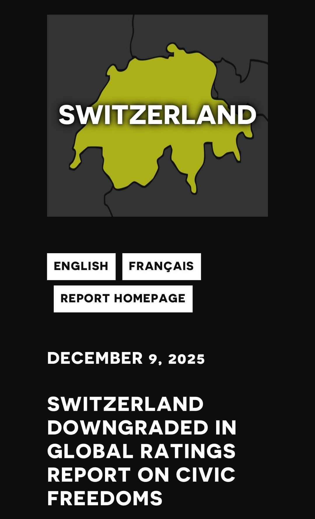 CIVICUS Monitor declassa il rating della libertà civica della Svizzera https://www.reddit.com/gallery/1pk6e6y di Zwerg_Zweck
