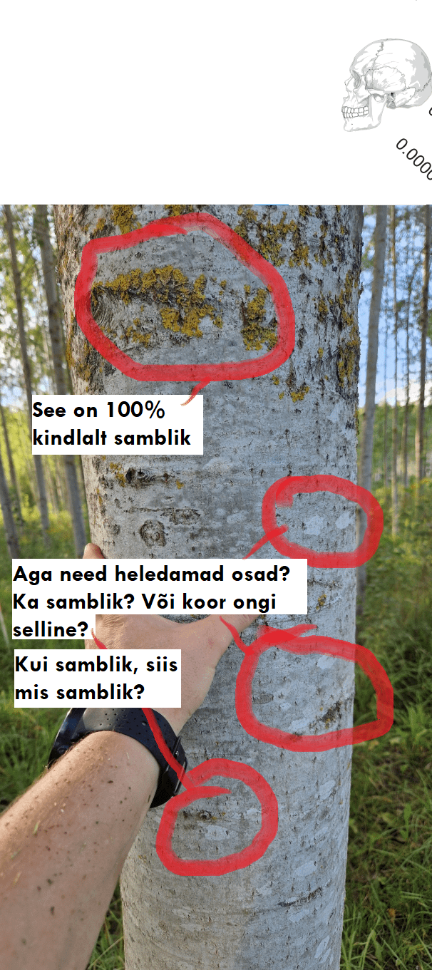 Edit: kuna mul oli praegu aega ja viitsimist siis – kooriksamblik, tundub kalju liudsambliku sarnane (kasvavad heledate ümmarguste laikudena)