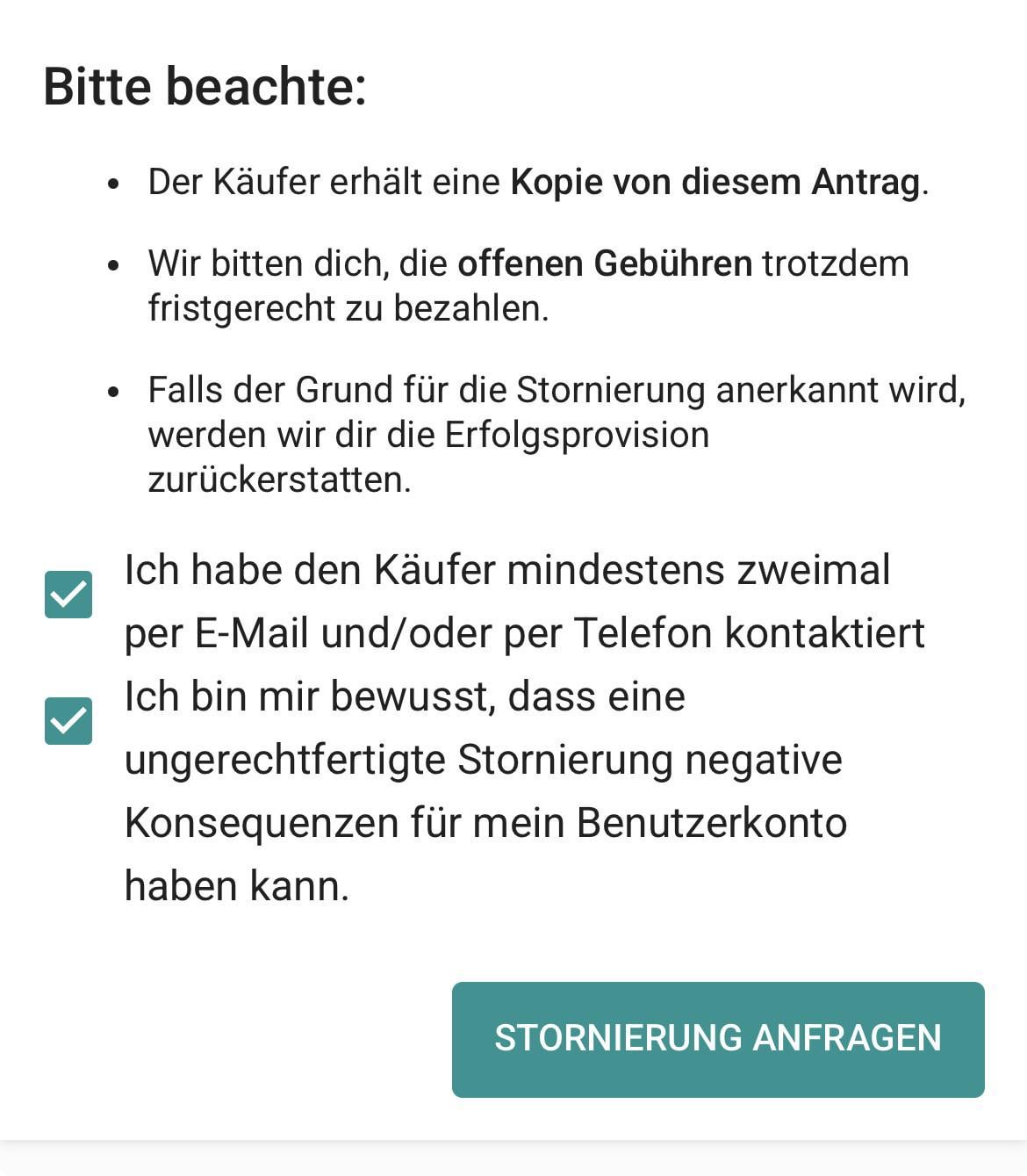 Perché il venditore deve prima contattare l’acquirente due volte prima di poter richiedere una cancellazione? Mi sembra che il venditore sia gravato di obblighi significativamente maggiori. Il venditore deve prima pubblicare un’inserzione obiettiva, pagare puntualmente le commissioni del 12% nonostante il mancato pagamento dell’acquirente e investire tempo nella preparazione della spedizione. L’acquirente, invece, deve solo effettuare l’acquisto.