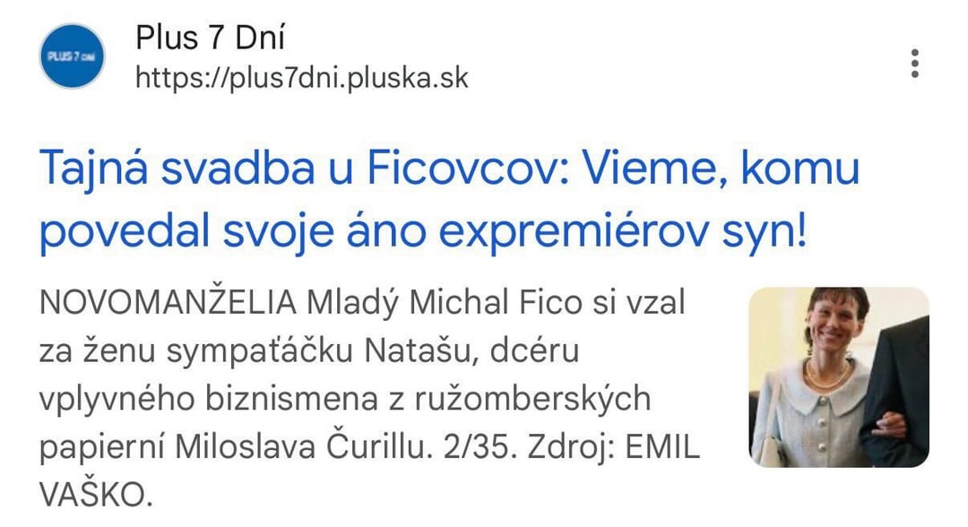 La moglie del giovane Fic si chiamava Čurillová quando era single. Lei è la figlia del ricchissimo uomo d’affari Čurilla, che faceva affari con Fiľ.