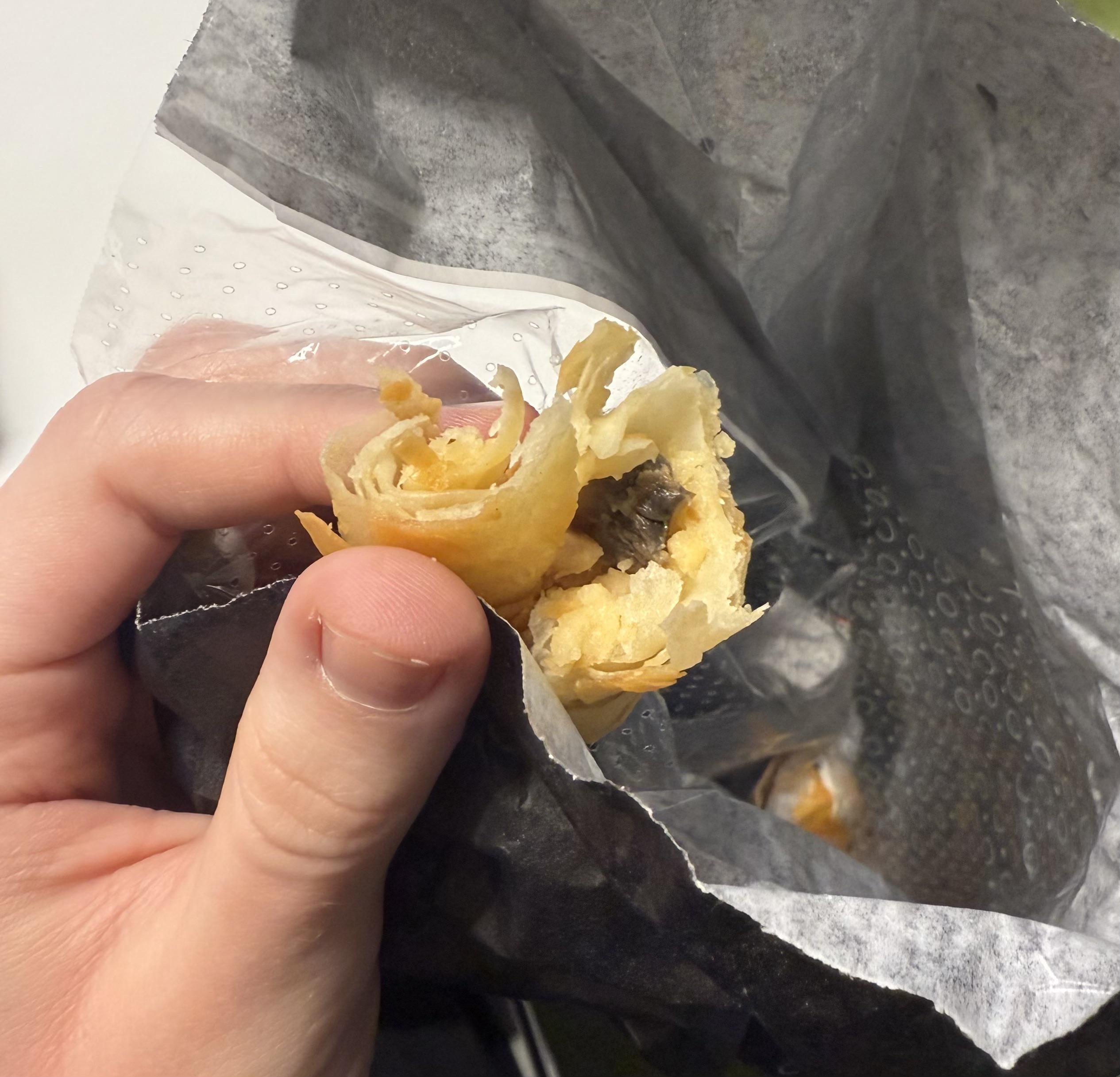 C’è uno strano grumo grigio all’interno della torta con ripieno di formaggio di pollo dal rotolo di pasta fillo Kaubamaja