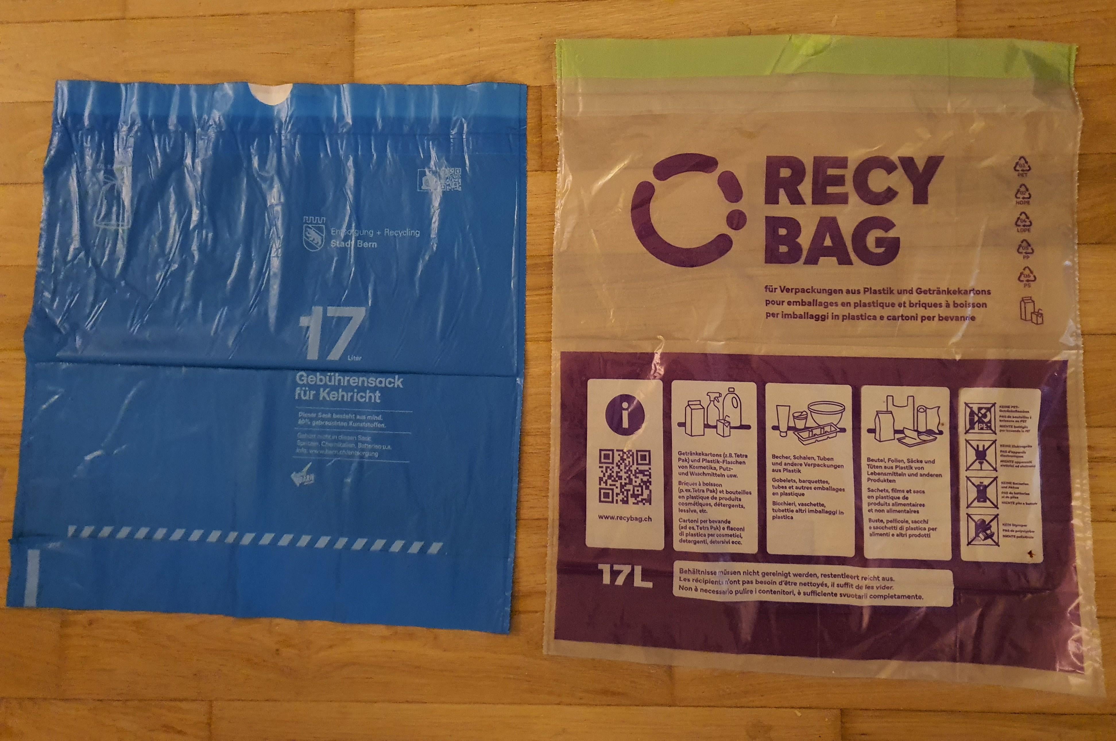 Next point: trash bags are extremly cheap in Zurich (compared to other places in Switzerland) so a recybag is about the same price (35l) or even a bit more expensive (17l).