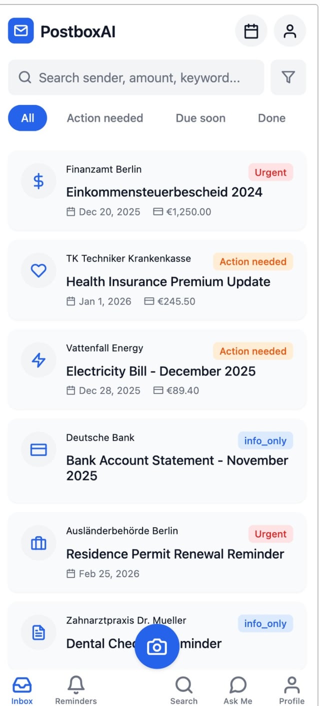 Assicurazione sanitaria, Finanzamt, ARD/ZDF, assicurazioni, contratti, multe, appuntamenti: la maggior parte arriva tramite la casella della posta, di solito con scadenze rigorose.