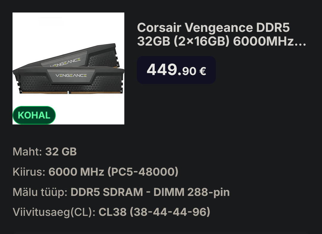 Loodan väga, et mu DDR4 32GB läpakas kestab veel paar aastat , selliste hindadega läpakat küll osta ei taha. Hea veel see, et lauarvutile otsin RX 9060 XT 16GB juunis.