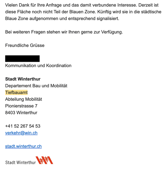Maybe you have missed this [signal](https://stadt.winterthur.ch/gemeinde/verwaltung/stadtkanzlei/kommunikation-stadt-winterthur/medienmitteilungen-stadt-winterthur/die-blaue-zone-wird-fertig-markiert/plakatkampagne/sujet-der-plakatkampagne/download) – when you enter Winterthur you see the information that parking is only allowed in marked zones. Big A0 posters as this rule is quite new.