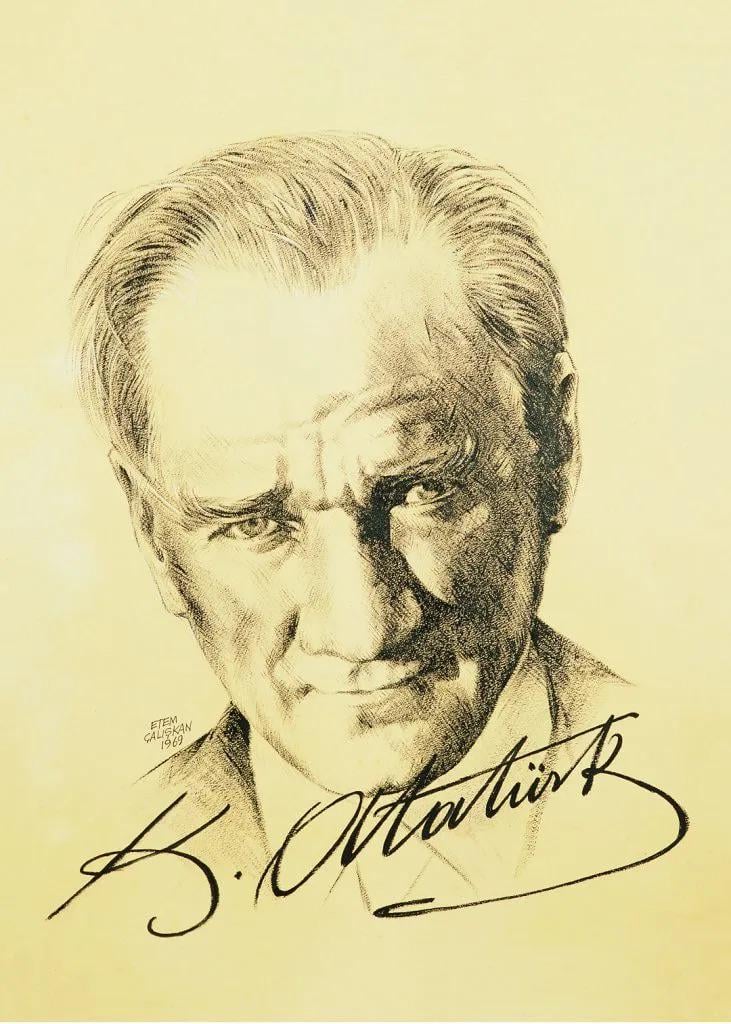 Şimdi daha büyük rezilliğe gelelim. Bu yıl tren çalışmaları nedeniyle yıkılan eski kütüphanenin ismi ise Tarsus’lu ünlü ressam, hattat Etem Çalışkan. Kendisi post’a eklediğim meşhur Atatürk çizimini de yapmıştır. Adam latin alfabesiyle ders kitapları için Gençliğe Hitabe ve İstiklal Marşı’nı kaligrafiyle yazmış, Antıkabir’de kitabelerin yazılışında çalışmış, tüm Nutuk’u kaligrafiyle yazmış birisi. Tarsus’lu, Cumhuriyetçi ve Atatürkçü birisinin adını vermek yerine Sırrı’nın adını vermeleri rezaleti başka bir boyuta taşıyor. Etem Çalışkan da bu sene öldü üstelik.