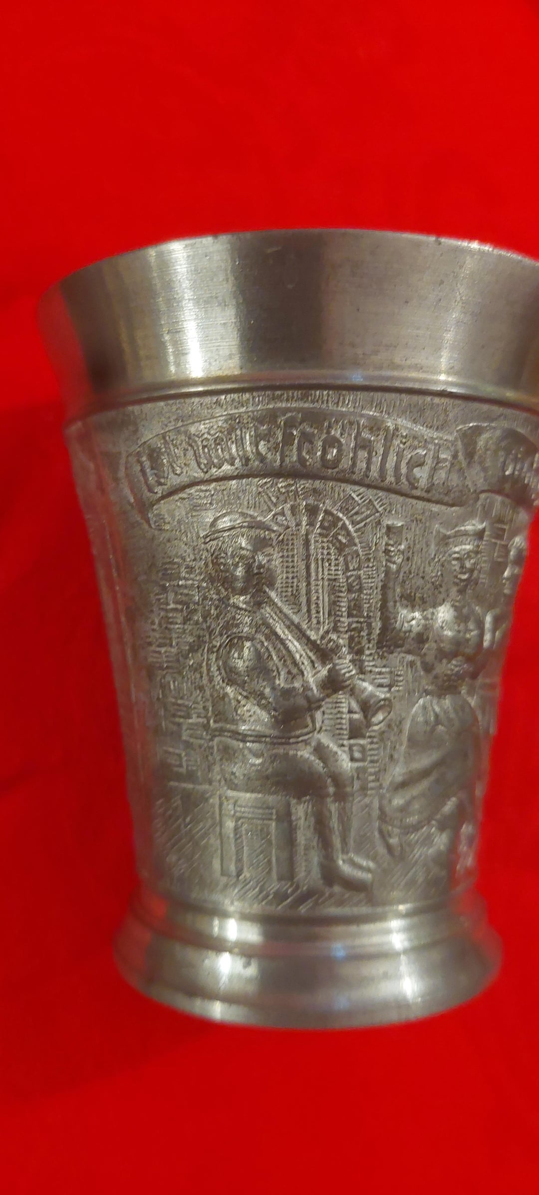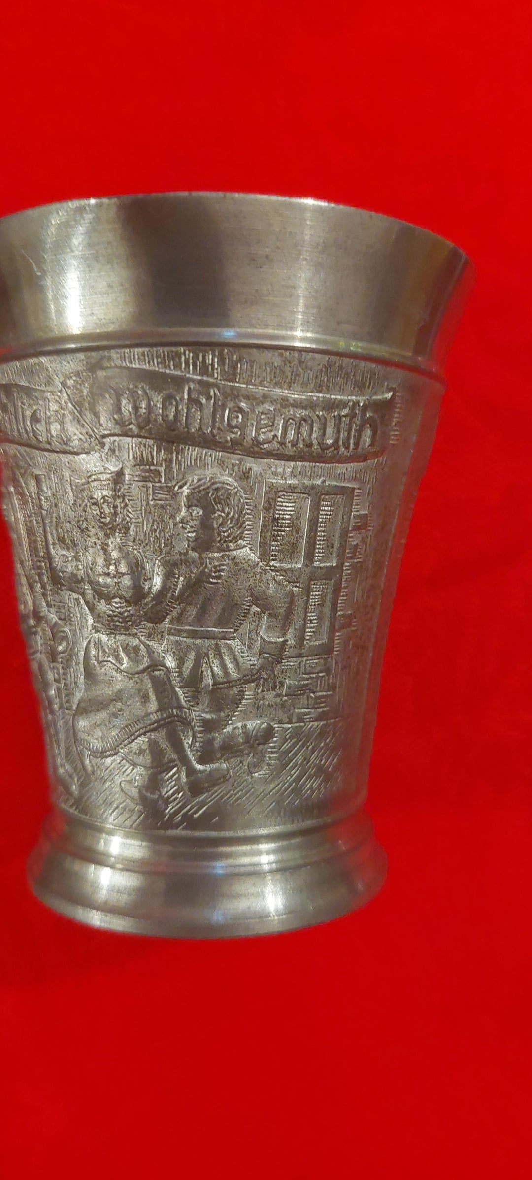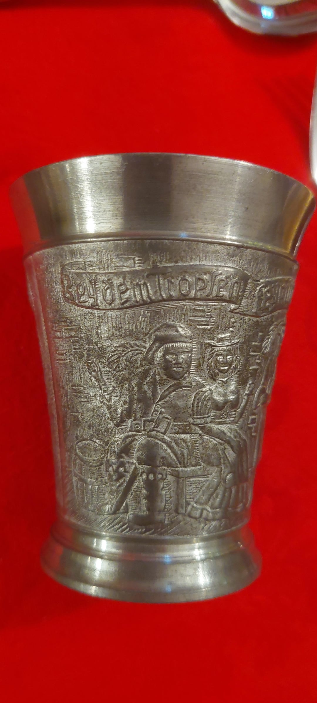 “Bey dem Tropfen feyn und guth, ist mir fröhlich wohlgemuth.” Which translates to “With this fine drop, I feel cheerful and content.”