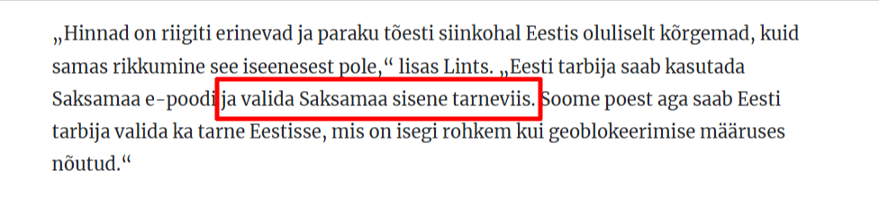 Sto leggendo un articolo sulle differenze di prezzo di MyProtein e il simpatico responsabile della protezione dei consumatori sottolinea che possiamo ordinare il prodotto da un e-shop tedesco e scegliere la consegna in Germania. Ad esempio, perché diavolo devo scegliere la consegna in Germania se vivo in Estonia???? Come mi arriva questo prodotto se lo ordino presso la porta di qualche Fritsu? Il funzionario ha usato il suo cervello (NB, il suo cervello) quando ha risposto a questa domanda?