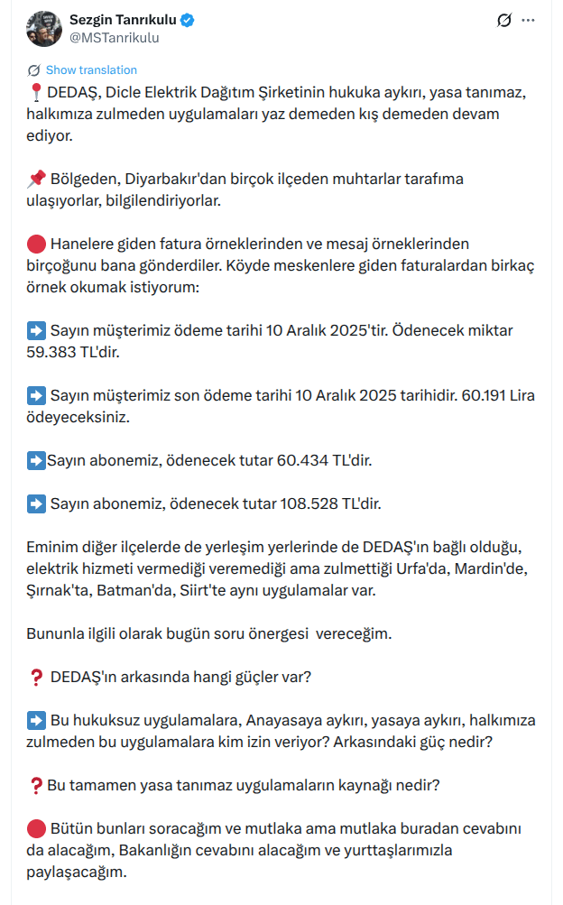 Adam diyor ki biz bu faturaları batıdakilere kaçak elektrik bedeli diye zaten kitleyip ödetiyorduk, bize neden hala fatura kesiyorlar 😀