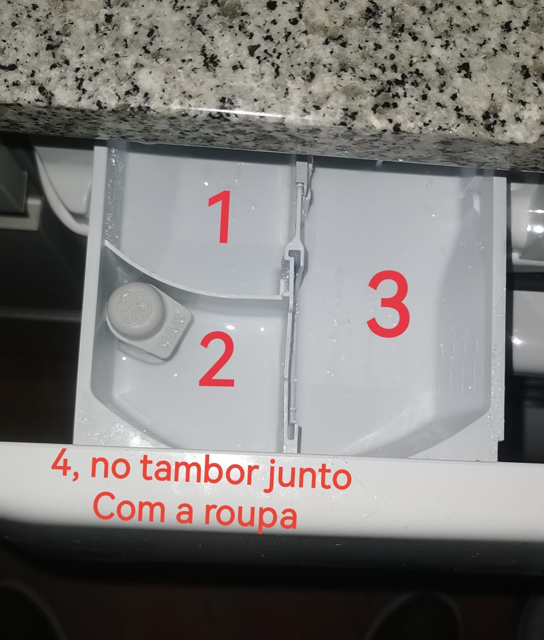 4 – no tambor irá entrar em contacto com a roupa na pre lavagem.