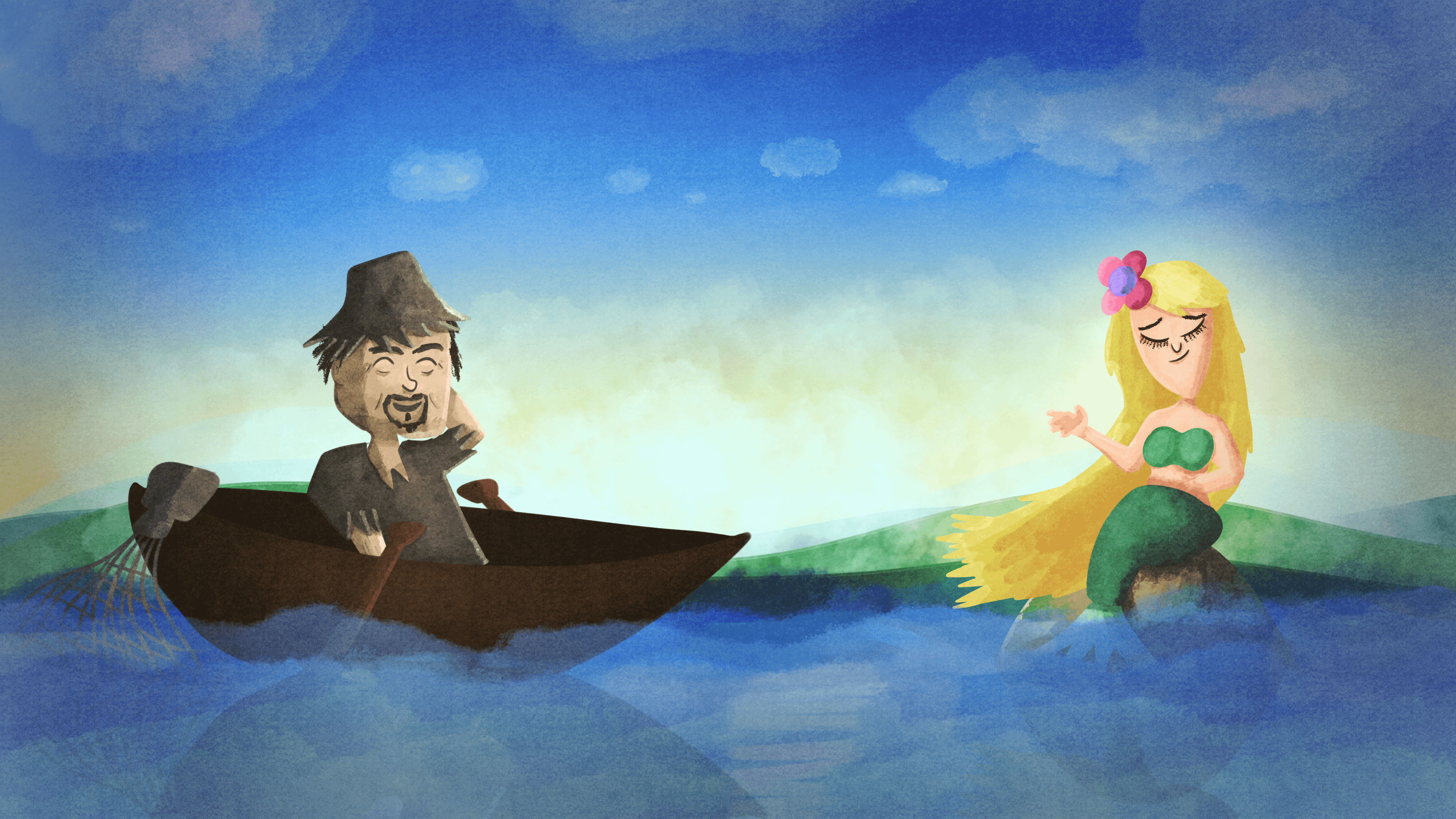 So che esistono diverse varianti di questa leggenda: ho scelto quella in cui un pescatore si innamora di una sirena di nome Sawa 🙂