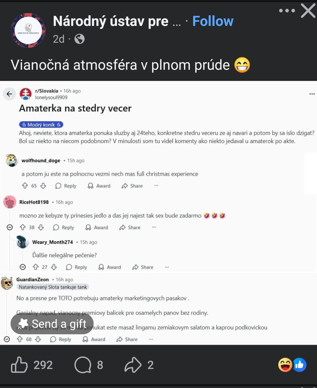 Sto scorrendo FB e all’improvviso il mio post è tra quelli consigliati.. oh mio Dio, il mio post ti ha colpito al cuore, che volevo e mercoledì ero con un amatoriale, che è già condiviso fuori, da r/Slovacchia anche su FB? Sai, hai un pezzo di realtà in te, di quante tue donne non riesci a liberarti, leggi da loro carpe di Natale e devi cercare altrove.