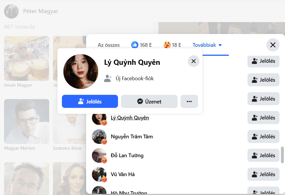 Pofátlanság, hogy lopott és kitalált vietnami profilokkal baszkolódnak. Szoktak álangolok, álamerikai nevek is szerepelni, na de azér’ már…