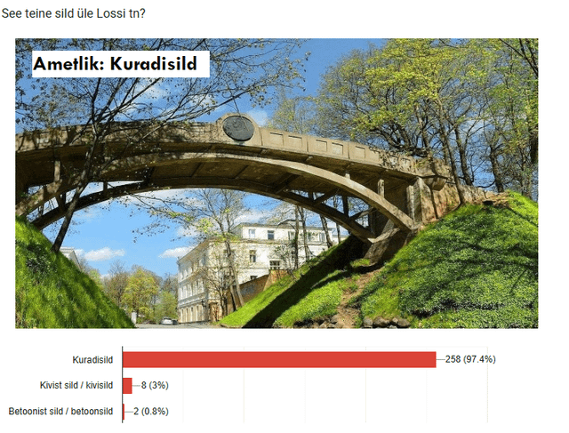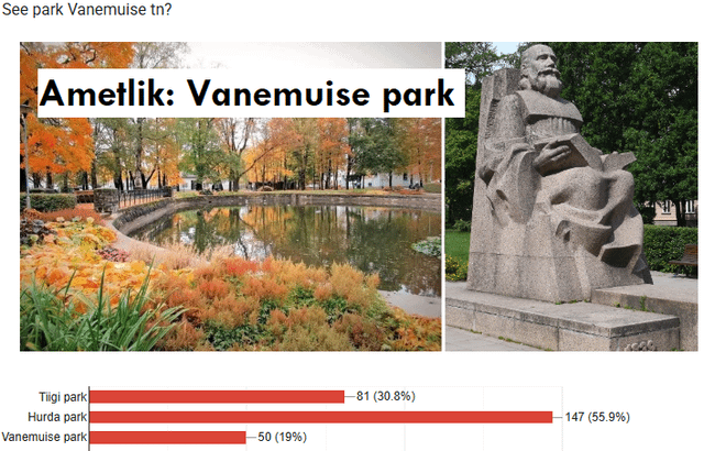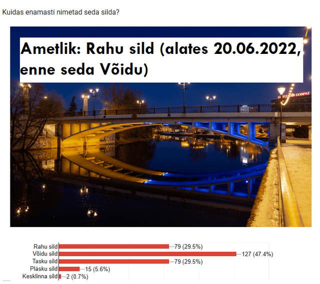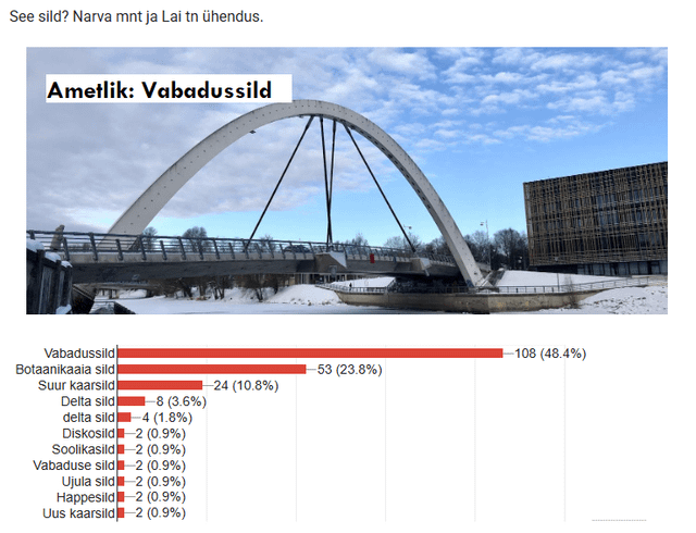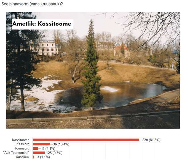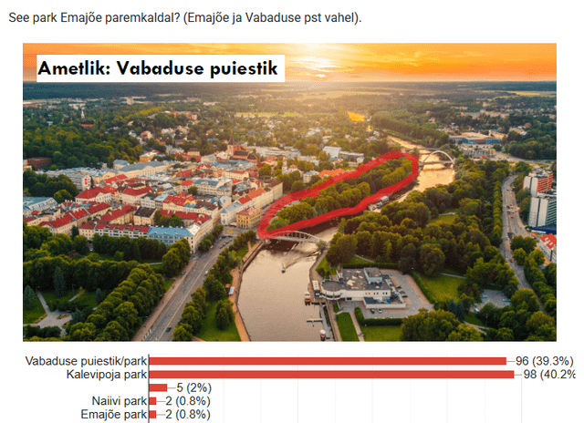 Il sondaggio stesso, se qualcuno che ha familiarità con Tartu non ha ancora risposto: https://docs.google.com/forms/d/e/1FAIpQLScTgz7oAcXBIsmq0MLo55dlOkslp3UcVfiWNNIGWJ_T5lZLOQ/viewform?usp=dialog