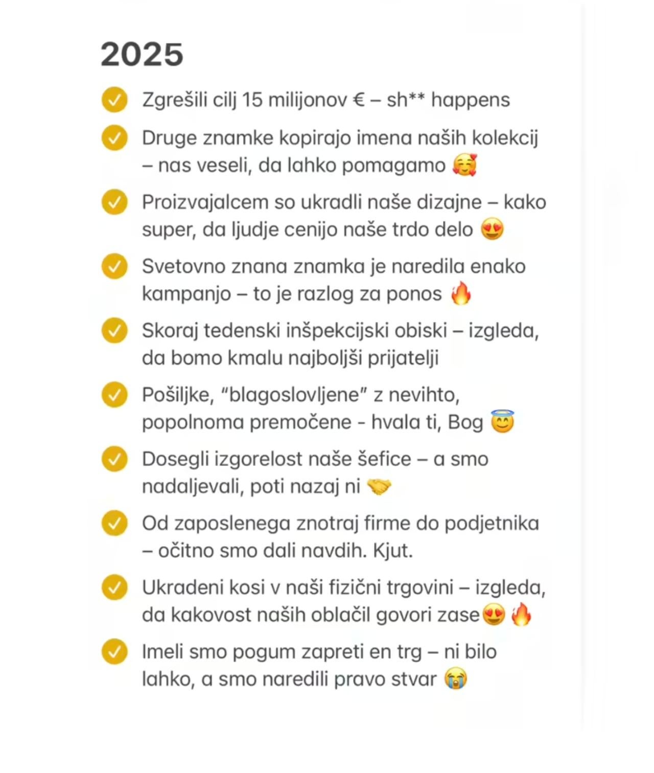 Meni je ta cel fenomen fascinanten. Kako ji uspe prepričat toliko ljudi v te precenjene pajkice? Tri četrtine folka k to nosi, fitnesa ni videlo niti od daleč. Res mi ne gre v glavo ta ovčja mentaliteta. Kakšne parasocialne odnose moraš imet z influencerko, da kupuješ robo za 50 €, k isto dobiš za pol manj.