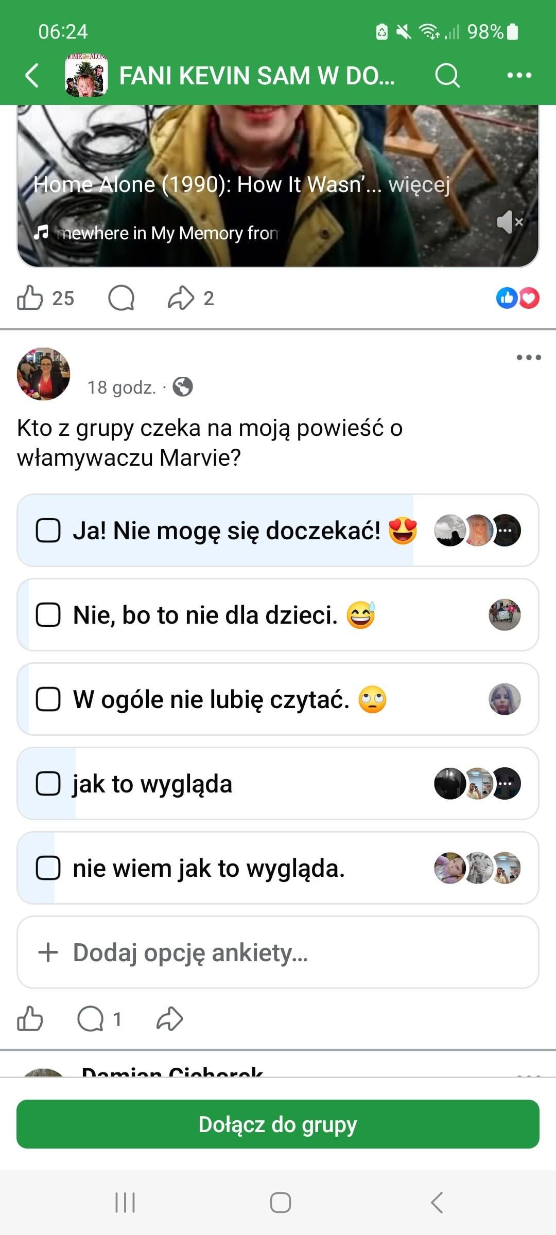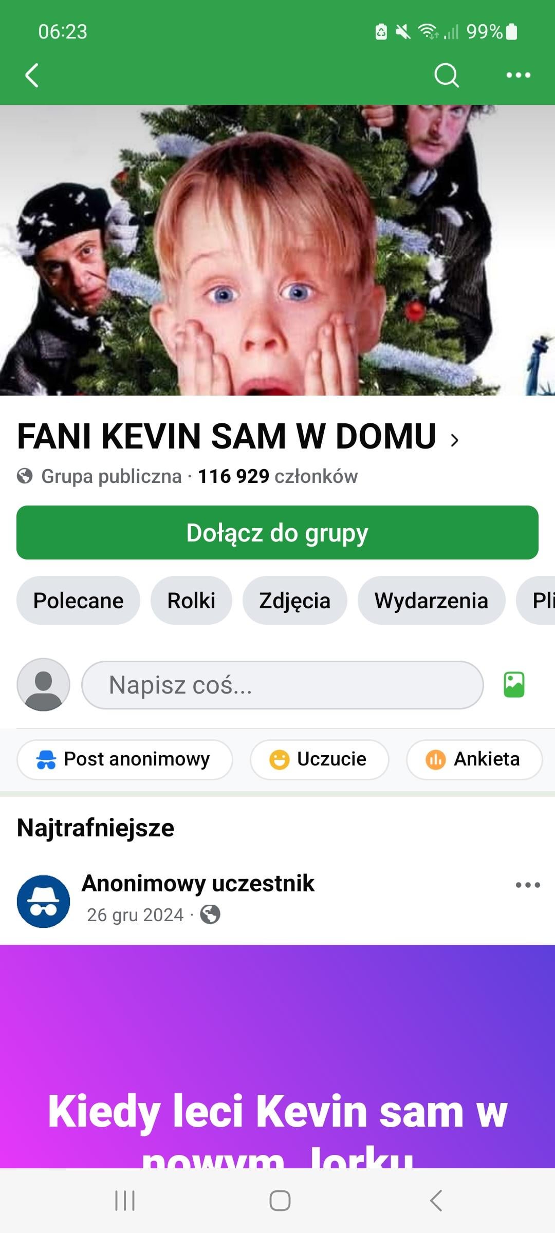 Ho visto un gruppo polacco di fan di questa serie su Facebook. è strano che abbia più di 100.000 persone, in effetti non c’è niente lì tranne i post con le foto di Kevin che vengono mostrate e che ripetono che è una tradizione. Un ripasso è stato un post su una fanfiction erotica su uno dei ladri scritta da una donna ultracinquantenne. Qualcun altro non capisce il fenomeno di questo film?