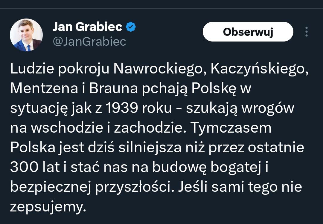 He didn’t say that Poland was searching for enemies in 1939. He said that by searching for enemies today Nawrocki and the rest are pushing for the same situation as in 1939, when we had enemies both in the west and in the east. You’ve just misinterpreted what he said.