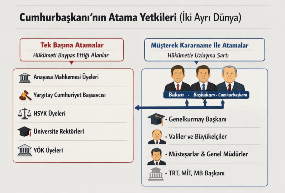 Bence devlette “refah kurumları” gibi bir sınıf yaratılıp siyasetten uzak durması gereken kurumlar bu sınıfa konulmalı. Örneğin Anayasa Mahkemesi, BTK ya da “Türkiye Bilişim Kurumu” gibi devletin bilişim hizmetlerini sağlayan bir kurum (şu anki Siber Güvenlik Kurumu olabilir), RTÜK, TÜİK, YÖK, TCMB, NVİ, YSK, BDDK, Yargıtay, Sayıştay, Danıştay, SPK gibi kurumlar bu sınıfa alınabilir. Bu sınıftaki kurumlar meclis tarafından denetlenecek ve başkan ataması 5 yıllıksa;