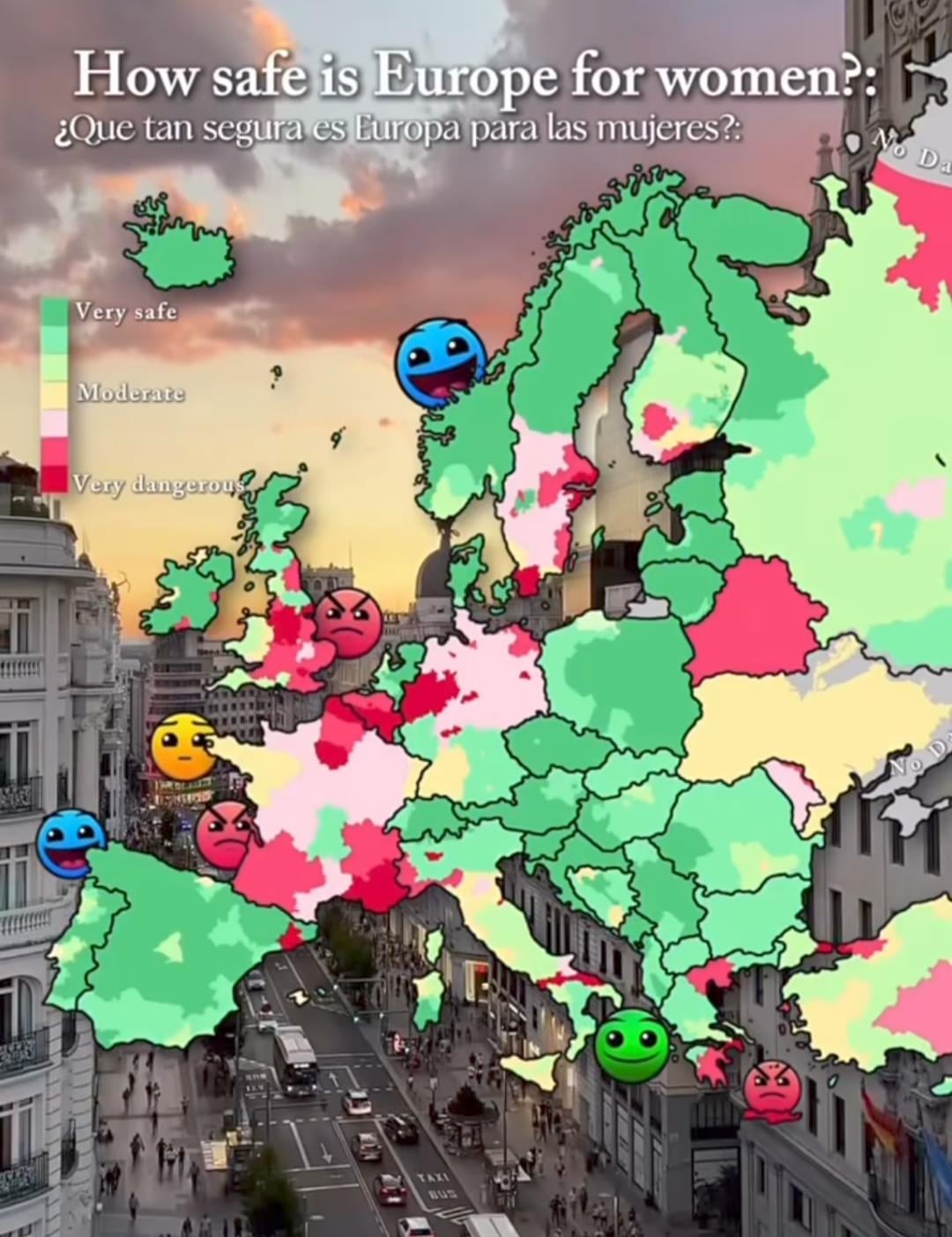 Уверен что карта должна быть серой т.к. нет данных, а на проверку окажется что безопасность женщин в топе по Европе.