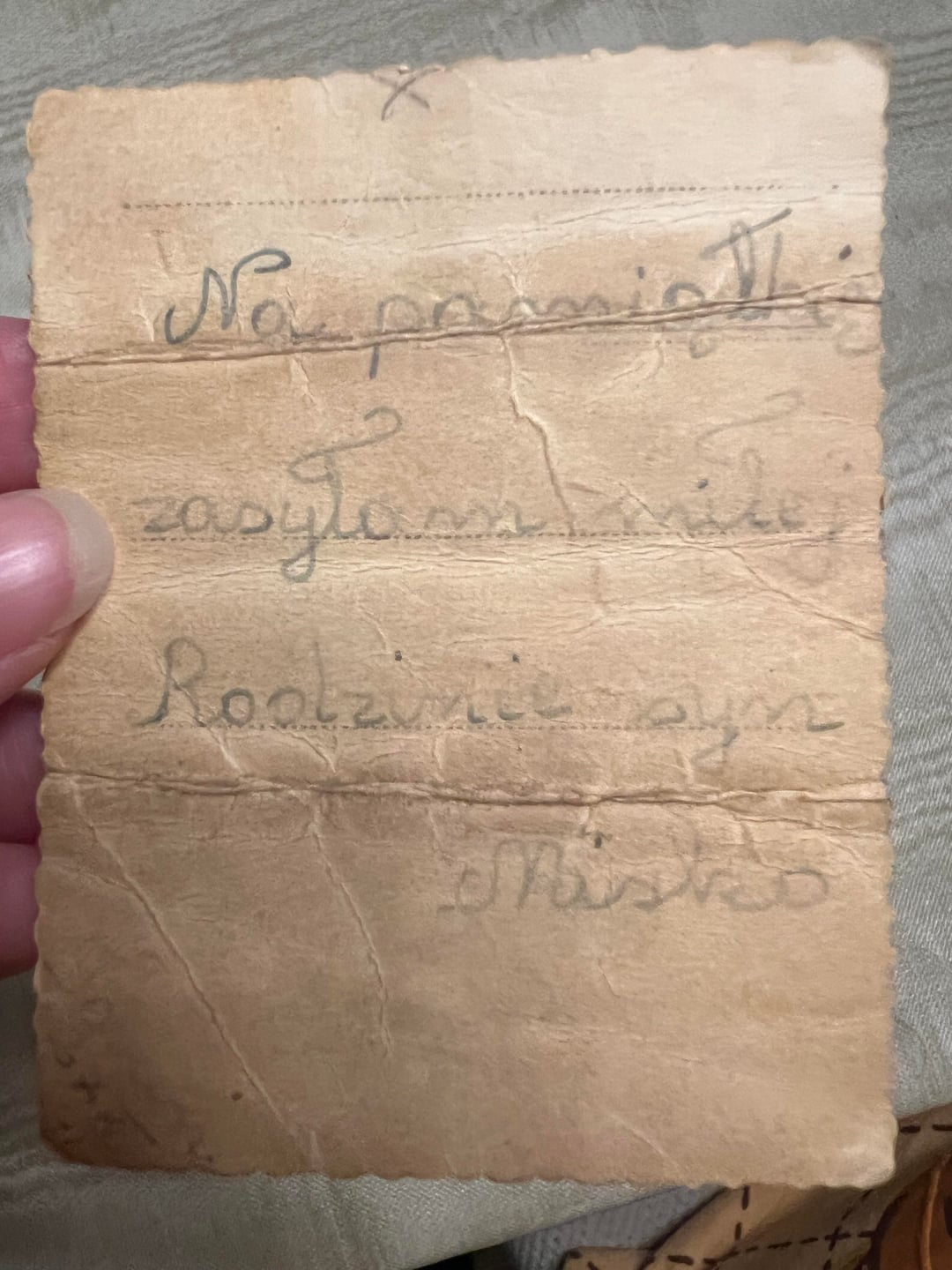 Late-Mention8692 on 30/12/2025 23:23 Under the portrait: „as a memento” In the letter: „as a memento, I send to Dear Family, son Miśko” Also, the person used no longer used word of „zasyłam”, which most likely means current „wysyłam” meaning „I send”.
