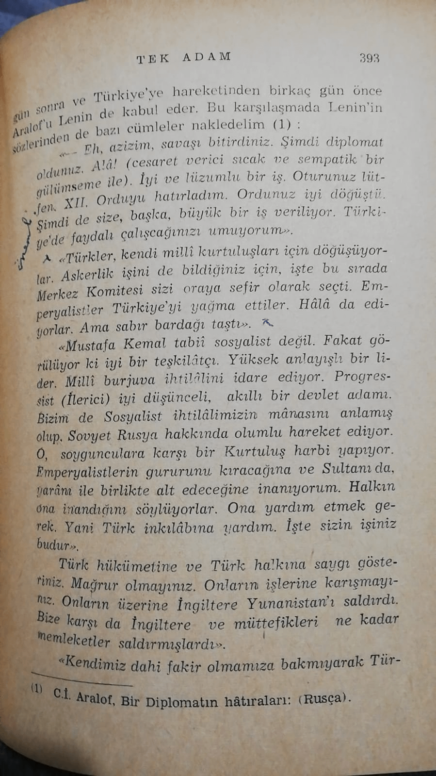 Lenin e Semyon Aralov (il primo rappresentante sovietico inviato dai sovietici al governo di Ankara) parlano di Mustafa Kemal e della lotta di liberazione nazionale.