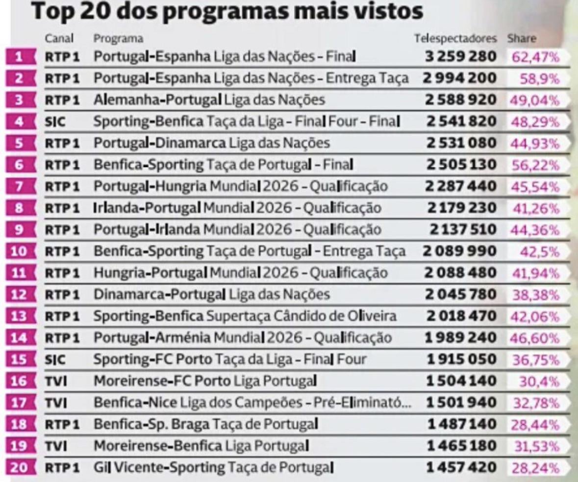 Quando a programação dos canais está virada para deformados e donas de casa, a maioria do público só vê serviços de stream, só liga os canais em directo para ver futebol.