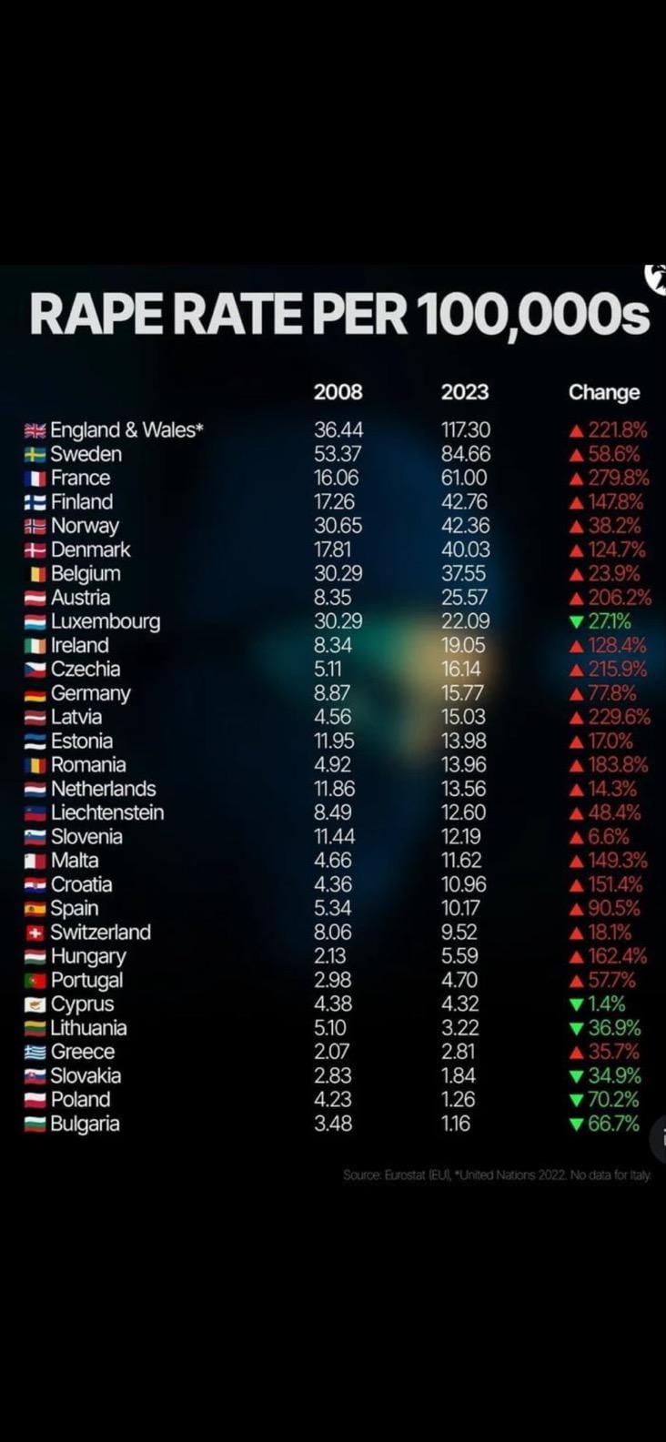 Predvsem to, da v državah na dnu policija ne ukrepa in tudi prijav ni. 2008 imajo države na vrhu kar velik delež, pa takrat še ni bilo te histerije z migranti. Nemčija jih je sprejela največ, delež pa primerljiv z državami, ki jih nimajo praktično nič?