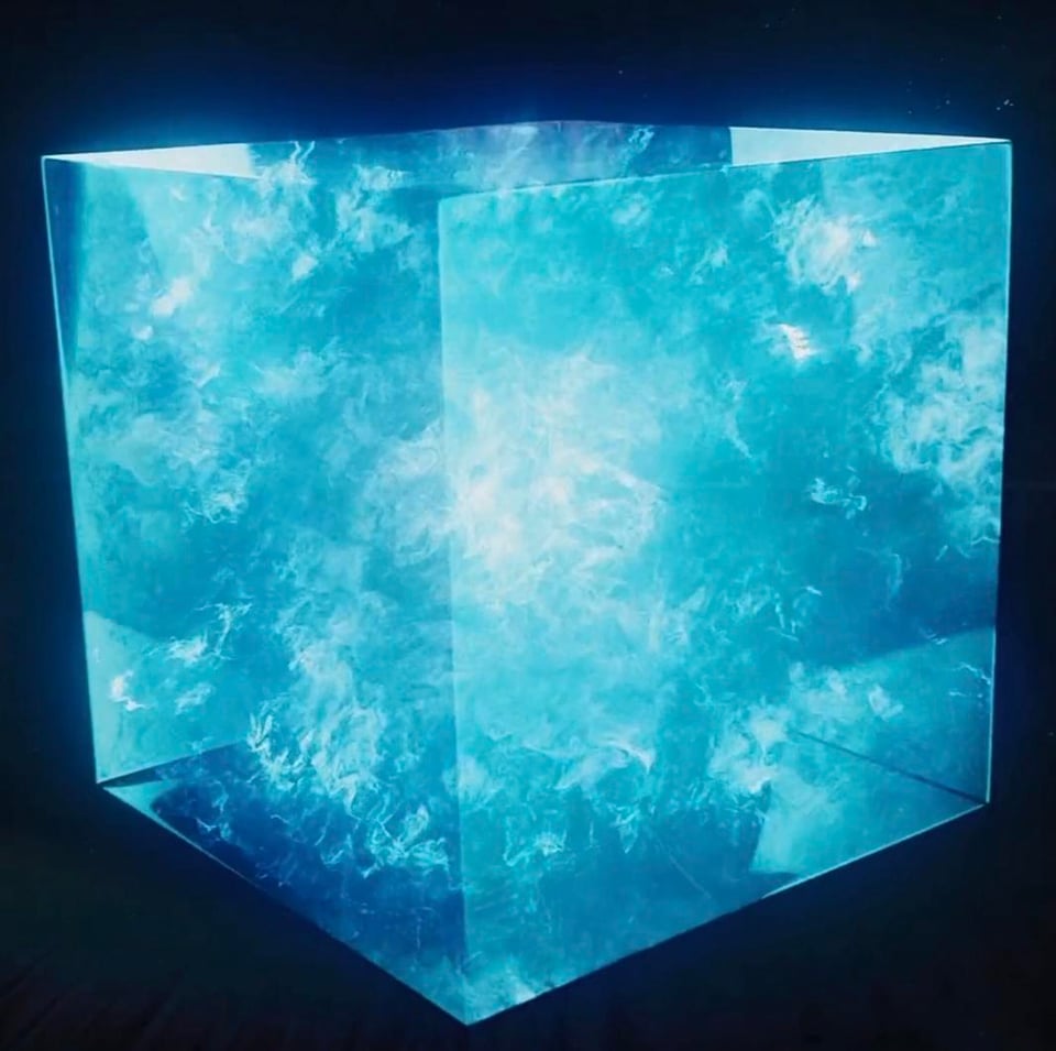 e così mi viene un’altra idea, perché c’è un breve tubo di ventilazione che porta in un’altra grande stanza, rompo il coperchio e mi avvicino e rompo un altro coperchio, cado a testa in giù e mi alzo dopo un po’, era chiaramente la stanza con il camino, e si scopre che questo camino è in realtà un buco grande e alto, vedo un piedistallo di metallo con sopra un cubo blu leggermente luminoso di medie dimensioni, prendo questo cubo e all’improvviso smette di brillare e cade a pezzi come sabbia blu, quindi afferro il piedistallo e provo a sollevarlo, ma scopro per sbaglio uno strano scomparto aggiuntivo in cui c’è lo stesso cubo, solo rosso, lo prendo, ma cade a pezzi come un bicchiere e rimangono solo pezzi, mi guardo la mano in cui tengo questo cubo rotto, tutto qui.