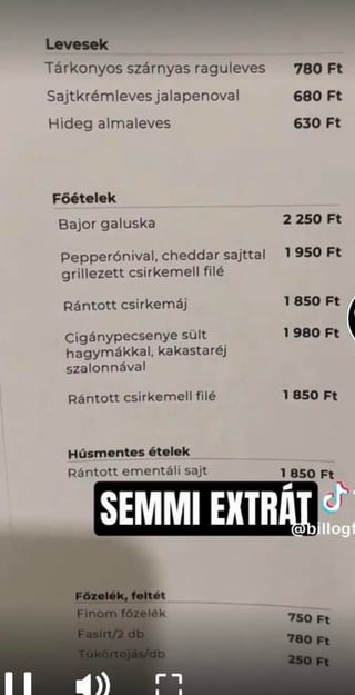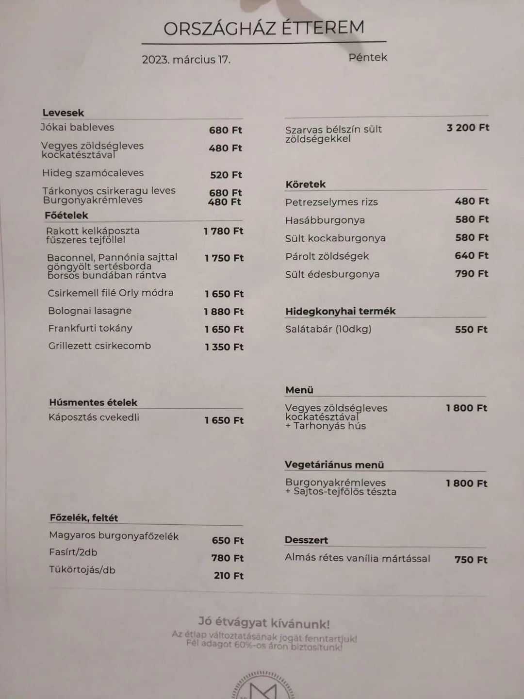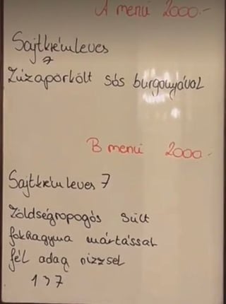 È particolarmente interessante notare che il prezzo del menu giornaliero è di 2.000 HUF. Per quanto riguarda la capitale, questo valore è particolarmente basso, dato che alla fine del 2025 il prezzo medio di un pranzo a Budapest oscilla tra 2.500 e 3.500 fiorini, mentre in molti posti un piatto principale con contorno parte da oltre 3.000 fiorini.