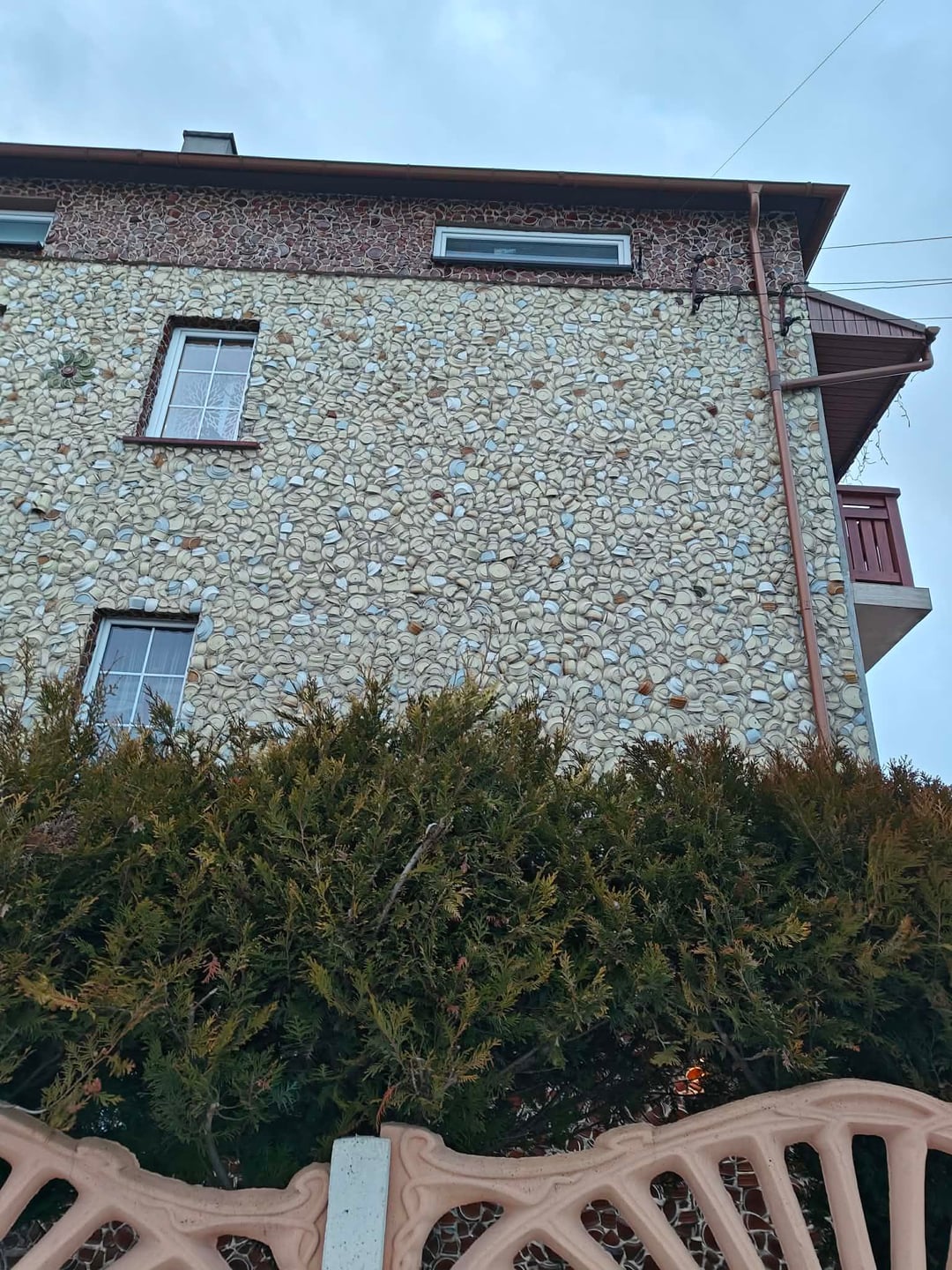 My theory is that during communist times siding was hard to get by, but broken plates from industrial production were abundant. So people took them and used it as a siding. It looks better than just concrete.