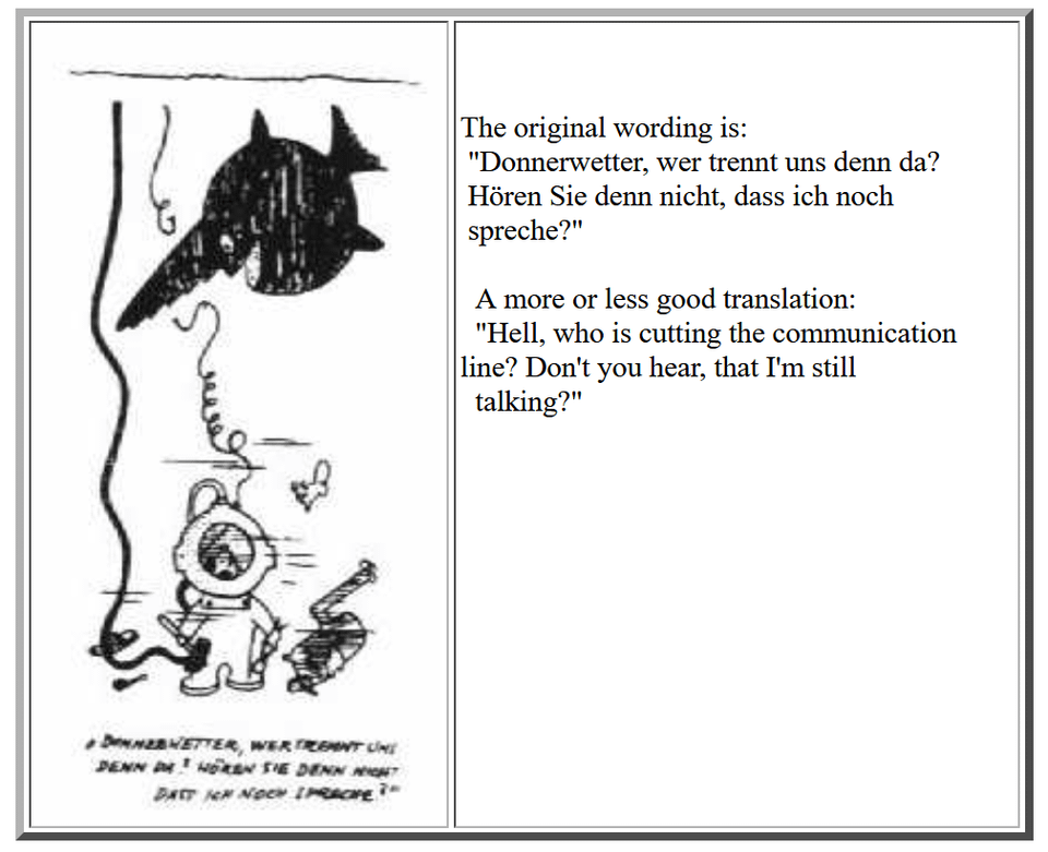 L’U-96 ha preso il suo emblema da una caricatura di un pesce preda che recide un cavo di comunicazione. Una nave mercantile con equipaggio russo che sta rompendo i cavi di comunicazione reca un emblema nazista con sullo sfondo la rottura dei cavi di comunicazione….
