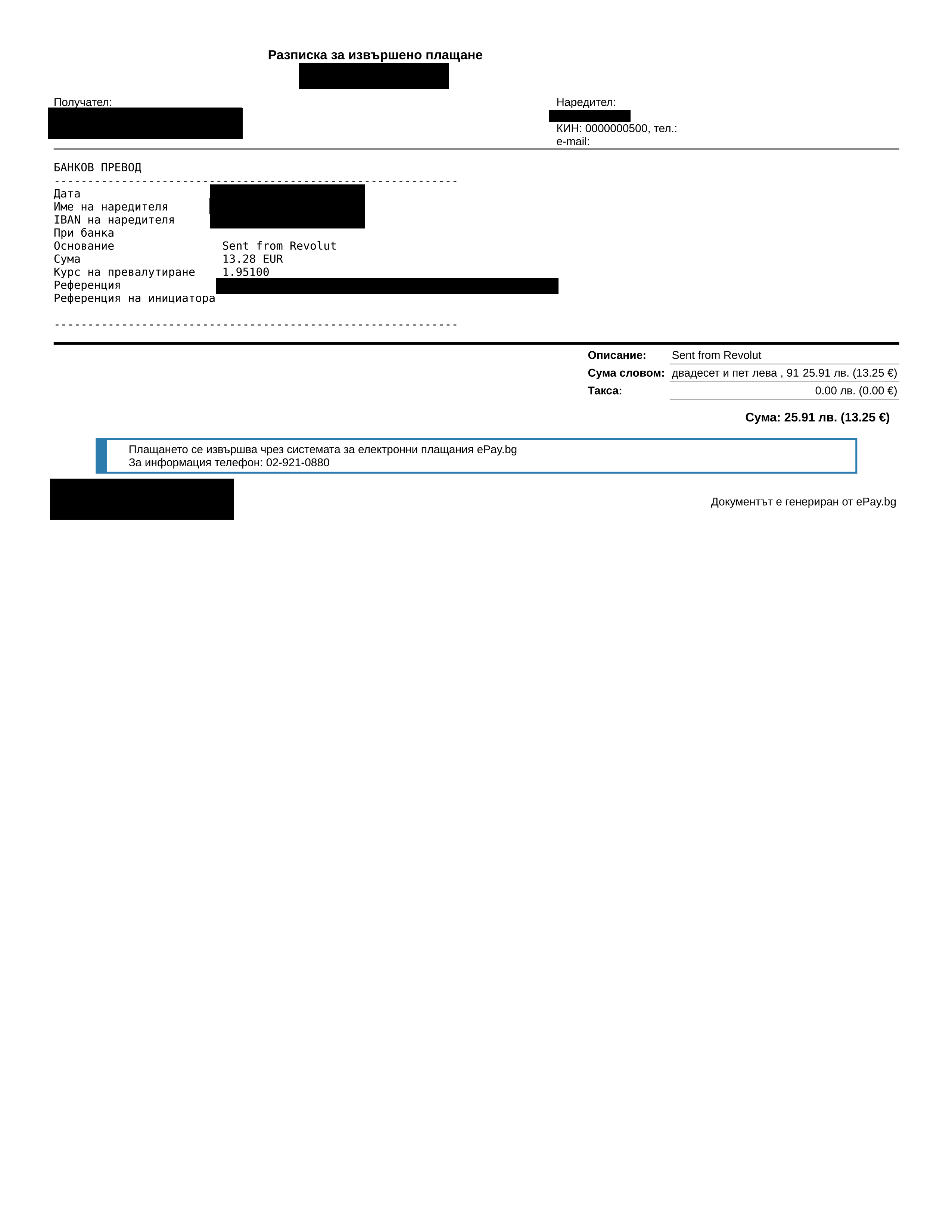 Con l’introduzione dell’euro, epay.bg ha iniziato a effettuare trasferimenti di denaro SEPA errati in cui si invia un importo in euro e un altro importo inferiore viene accreditato sul conto del destinatario.