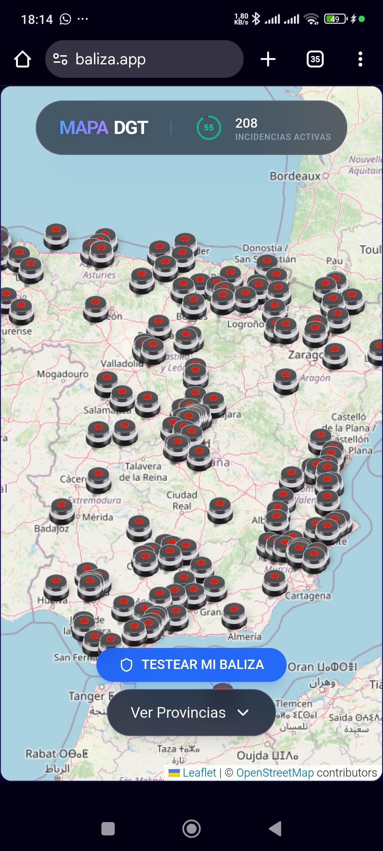 REcordad que quien ha hecho este mapa ha pillado los datos del [mapa de tráfico de la DGT](https://etraffic.dgt.es/etrafficWEB/) y ha metido todo lo que hay en “otras afecciones” como si fuesen las balizas, que para nada son todas eso (igual alguna sí, no lo sé), pero no os fiéis nada de ese mapa.